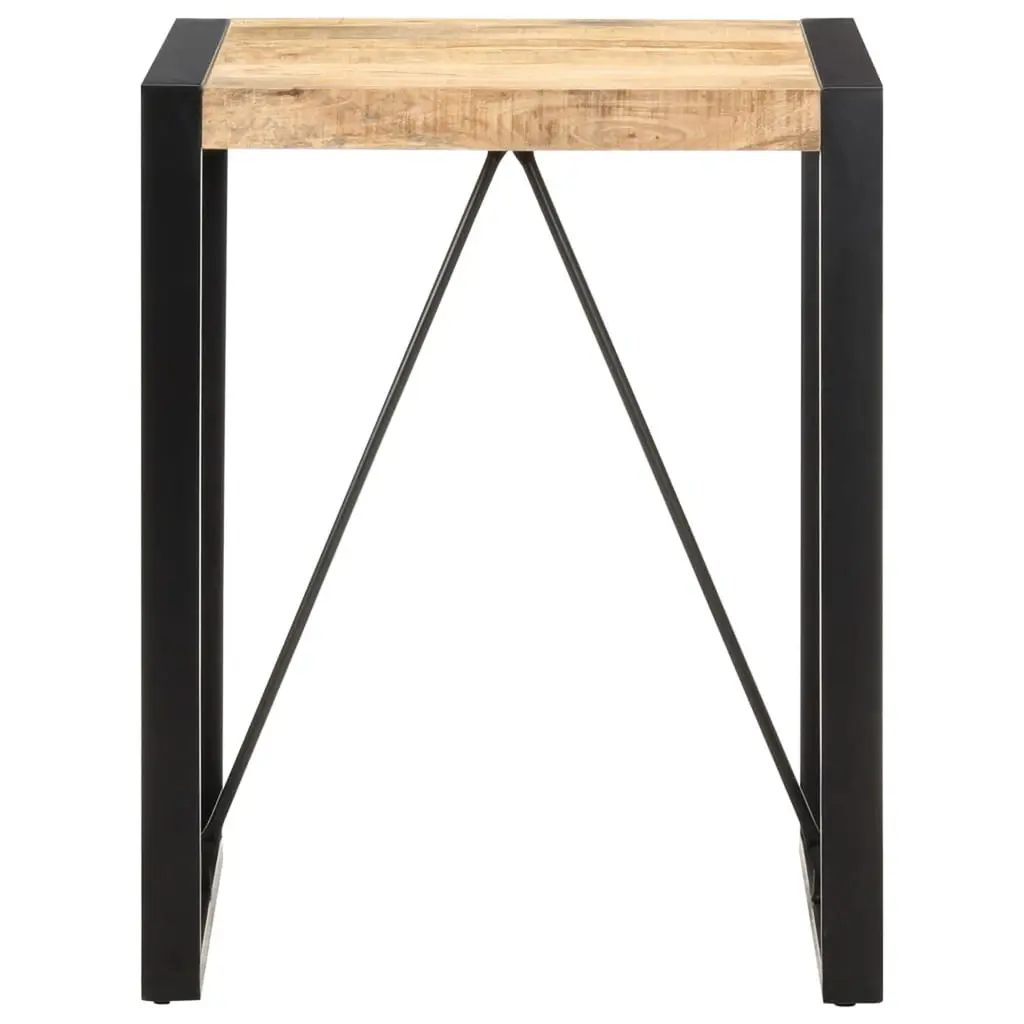 This dining table blends functionality and looks, making it a standout piece in your dining room or kitchen. Made from solid rough mango wood, it has a lovely rustic finish that highlights its unique grain patterns. Supported by a strong black powder-coated steel frame, it adds an industrial flair, perfect for modern homes. Unique Grain Patterns: The table's surface is made from solid rough mango wood, offering individual variations that make each piece truly special. Industrial Design: This dining table has a robust, factory-inspired vibe that fits easily into modern dining spaces. Sturdy Construction: Thanks to its durable metal frame with a powder-coated finish, this table is built to handle everyday use, ensuring it lasts in your home. Compact Size: At 23.6in by 23.6in and 29.5in tall, it’s perfect for smaller dining rooms or kitchens, giving enough surface area while saving space. Easy Maintenance: The smooth mango wood surface makes cleaning a breeze, just wipe with a soft cloth to keep it looking good.