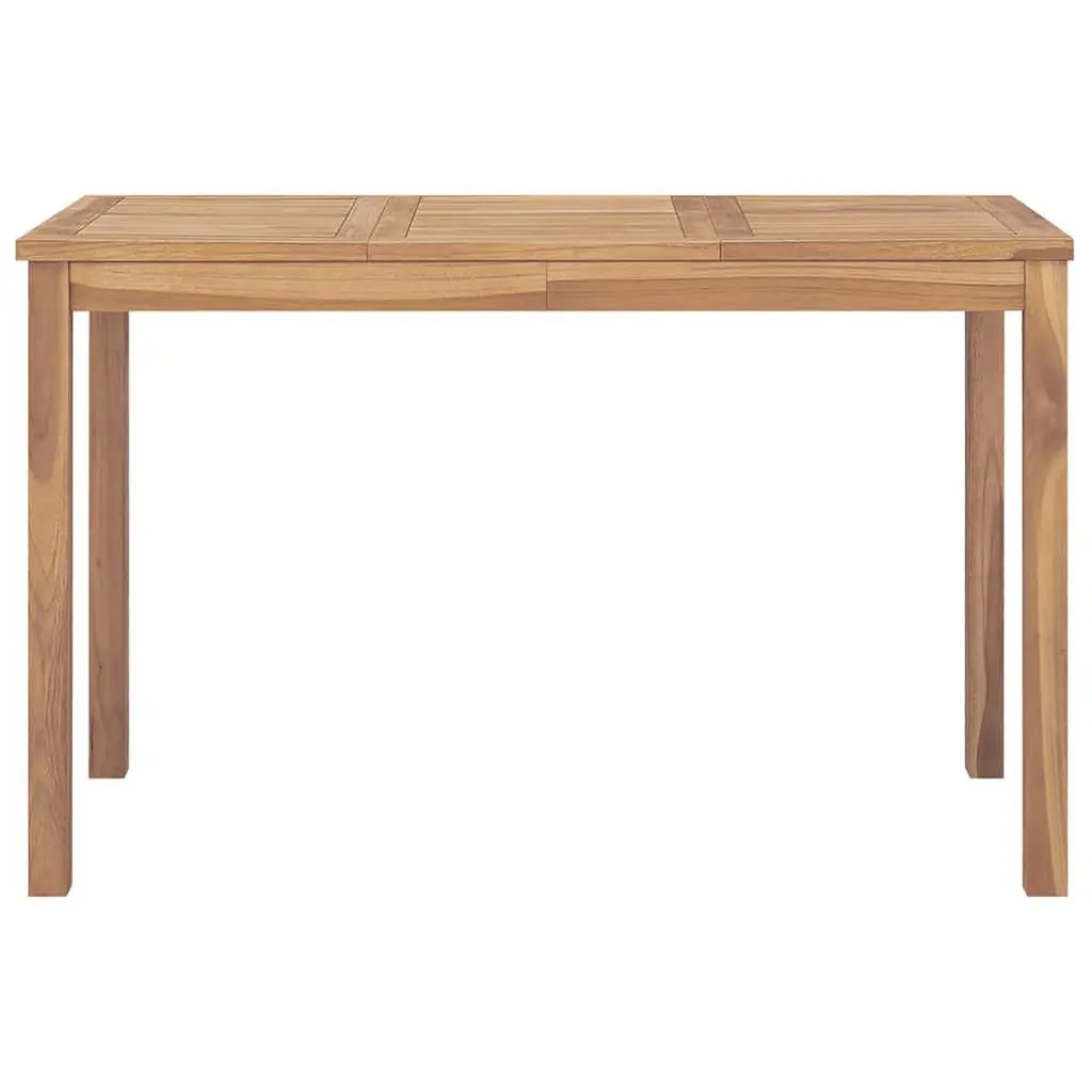 This Solid Teak Garden Dining Table is a gorgeous addition to any place, made from fine sanded teak hardwood that feels smooth and looks beautiful. Its classic rectangular shape and warm brown color create a welcoming vibe, perfect for family dinners, brunches with friends, or chill evenings under the stars. It’s the main attraction for your dining experience. Material Excellence: Solid teak wood offers great durability and a natural look while being moisture and UV resistant.Timeless Aesthetics: Its warm brown hue and smooth finish work with any decor, brightening both contemporary and traditional places.Versatile Use: Perfect for all dining occasions, indoors in the kitchen or outdoors on the patio, fitting right into your lifestyle.Spacious Dimensions: At 47.2 in long and 27.6 in wide, it easily seats up to four, letting everyone enjoy meals together.Easy Maintenance: The oiled surface highlights the wood's natural grains and makes cleaning a breeze with regular soap and warm water.