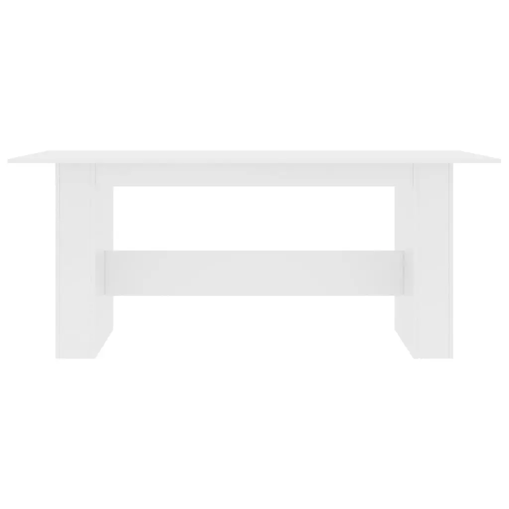 This dining table is all about minimalist style with its clean yet striking design, making it a must-have for modern kitchens and dining spaces. Made from engineered wood and finished in a smooth, stylish white, this table sets a welcoming mood for family get-togethers or hosting friends, blending functionality with looks. Minimalist Design: The clean lines and stylish finish create a minimalist look that elevates any room's decor. Its simplicity allows it to fit in well across different styles, from modern to vintage.Easy Maintenance: Thanks to its smooth engineered wood surface, this table is super easy to clean. Just a quick wipe with a damp cloth does the trick, making it great for daily use.Versatile Use: It’s designed for dining, so it works well in both formal and casual settings. Perfect for cozy family meals or larger gatherings, it’s a versatile piece of furniture.Sturdy Construction: Made from quality engineered wood, this table is stylish while also promising durability and strength for daily dining needs.Perfect Dimensions: At 70.9 in long and 35.4 in wide, it easily fits six adults, giving you plenty of space for dishes and dining gear without feeling cramped.