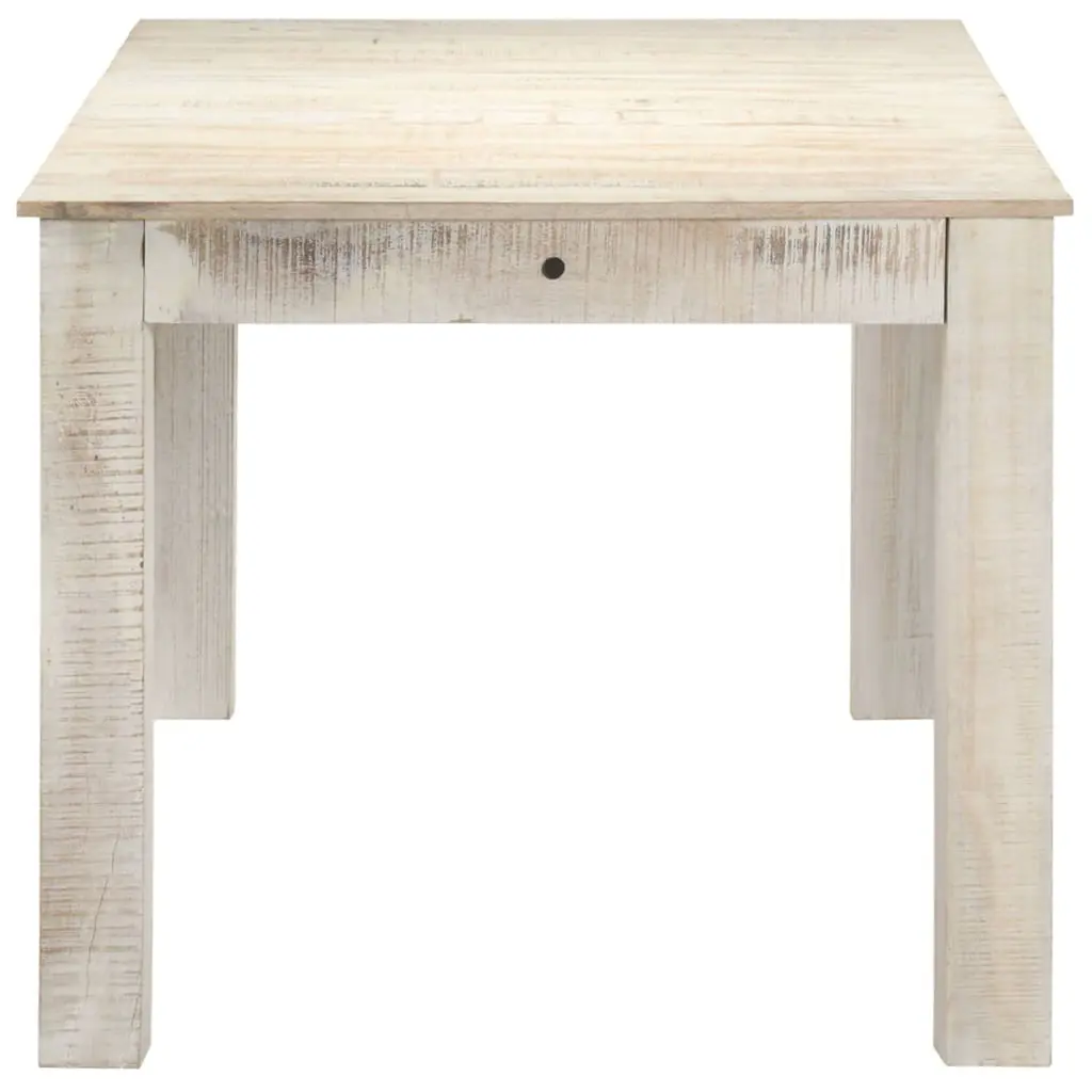 This Rectangular Whitewashed Mango Wood Dining Table is a beautiful focal point for any dining area, combining rustic charm with modern functionality. With a spacious surface, it comfortably suits family meals or get-togethers with friends, enhancing the overall vibe of your dining space with its lovely whitewashed finish and distinctive wood grains. Craftsmanship: Made from solid mango wood, ensuring it’s built to last while showcasing the wood's natural beauty.Unique Patterns: Each table has its own distinct markings that make your dining experience special.Spacious Design: The 70.9 in length gives enough space for up to 6 people, ideal for family dinners or celebrations.Rustic Look: The whitewash finish and smooth texture create a cozy feel, perfect for any home style.Easy Maintenance: Just wipe with a dry cloth and you’re good to go!