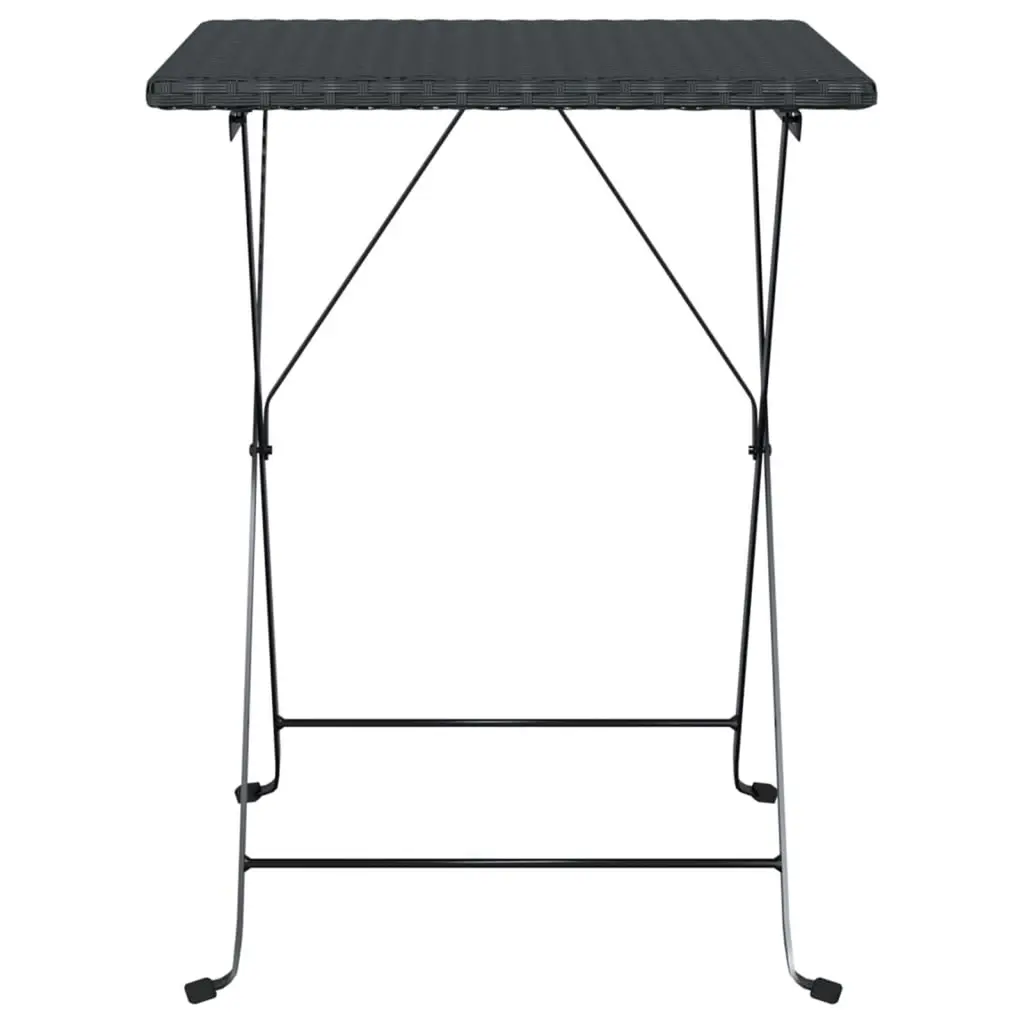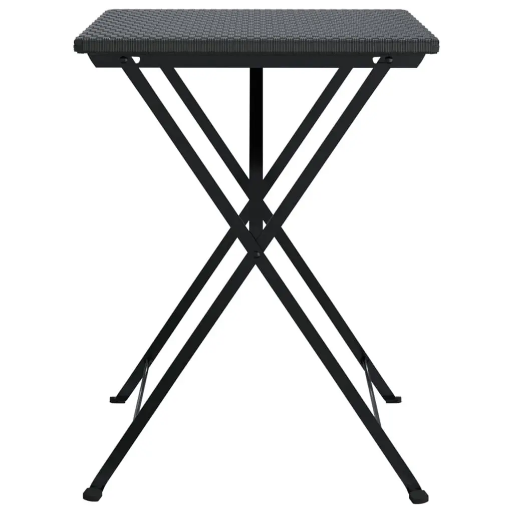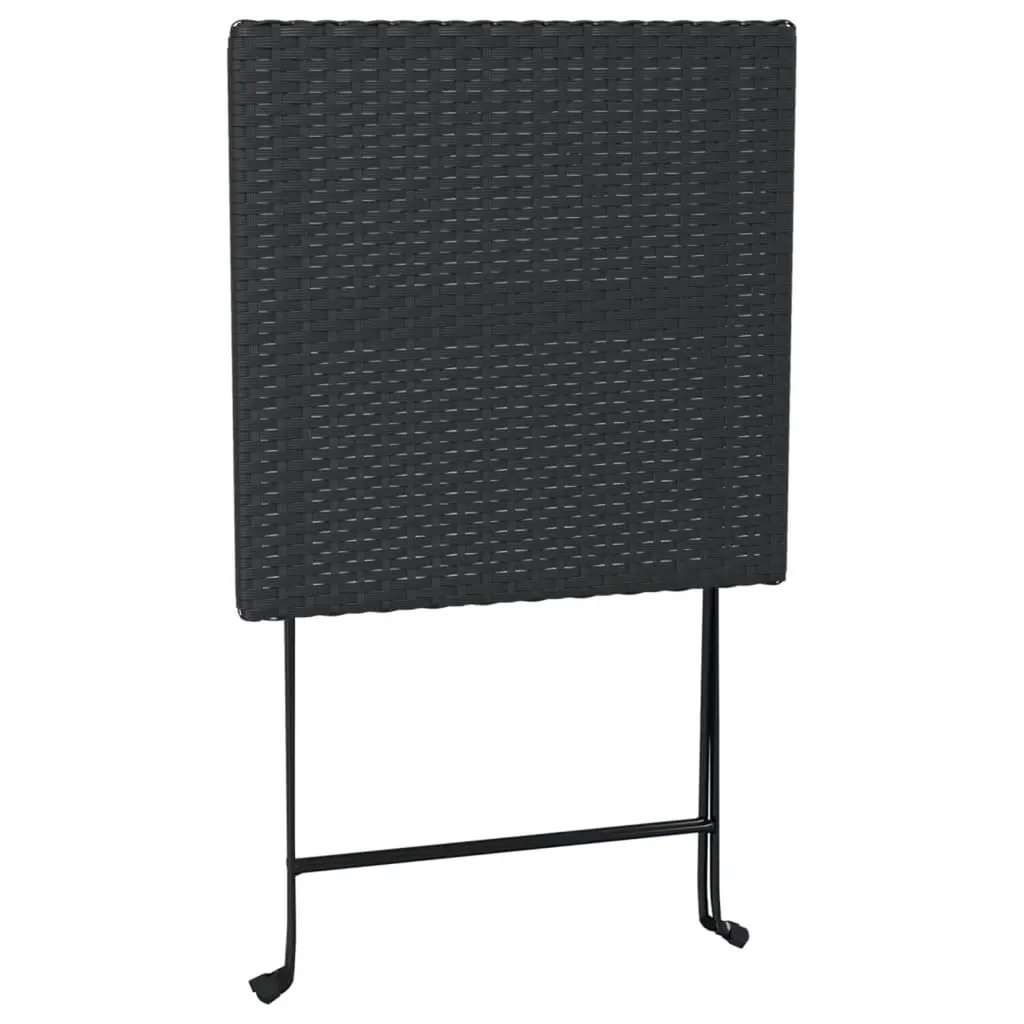 Vidaxl Folding Bistro Table Black Pe Rattan, Powder-Coated Steel Medium