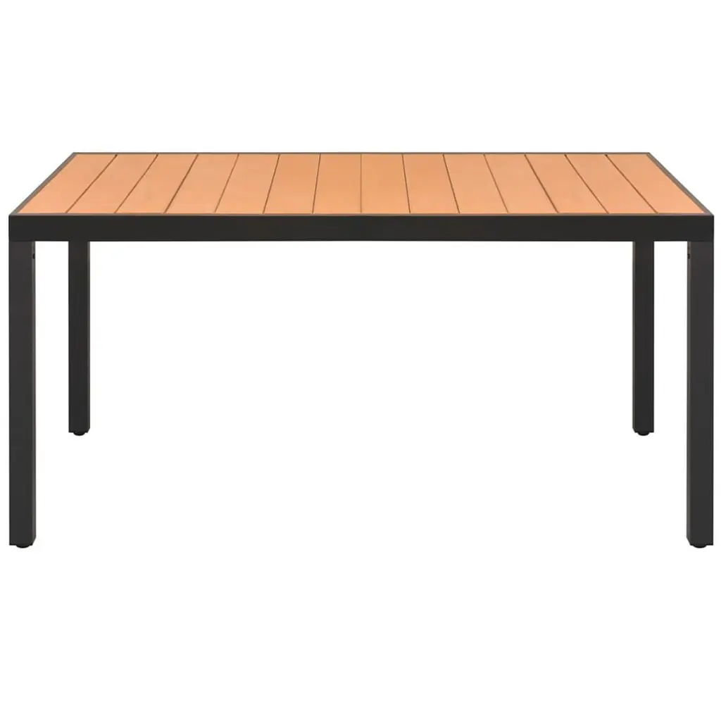 This outdoor dining table is where modern looks meet practicality. It's a must-have for any patio or garden. With a roomy surface and a lovely brown finish, it's perfect for gatherings with family and friends to enjoy meals outdoors, creating a laid-back vibe for leisure and fun. Durable Build: Made from tough aluminum and WPC, this table is built to withstand the elements while being light enough to shift around easily.Spacious Design: It comfortably seats up to six guests, making it perfect for dinners, barbecues, or casual brunches outside.UV Resistant: The materials are protected from UV rays, keeping the surface looking good even under constant sunshine.Sleek Modern Style: With its clean rectangular shape, this table adds a touch of style to any outdoor setting.Easy Maintenance: Just a quick wipe down with a damp cloth keeps it looking great, so you can relax and enjoy the outdoors.