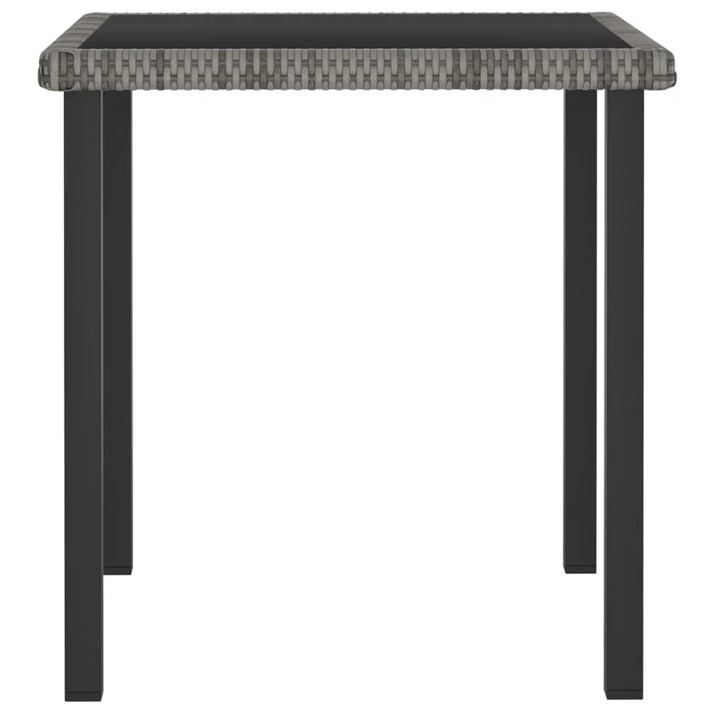 This Square Garden Dining Table is a fantastic and functional addition to any outdoor space, giving you a lovely spot for dining and relaxing. With a chic grey finish and clean lines, it fits in perfectly with all sorts of garden settings, from cozy balconies to large patios, making it spot on for both intimate gatherings and bigger outdoor meals. Weather-Resistant Material: Enjoy the durability of poly rattan, which holds up against the weather brilliantly. This material won’t fade from the sun, keeping your table looking classy for ages.Modern Design: The sleek and minimalist style fits in nicely with your outdoor decor, adding to the vibe of your garden or patio. It’s a simple yet elegant look that offers a sophisticated dining spot for all kinds of settings.Sturdy Construction: Built with a tough powder-coated steel frame, this table is solid enough for up to four diners. Its strong legs ensure it stays stable, making it perfect for outdoor meals.Easy Maintenance: The tempered glass top not only adds elegance but also makes cleaning a breeze, leaving you with more time to chill. Just wipe the surface with a damp cloth to keep it looking fresh.Compact Dimensions: At 27.6 in by 27.6 in and 28.7 in high, this table is just right for smaller outdoor spaces, while still catering to four people comfortably.