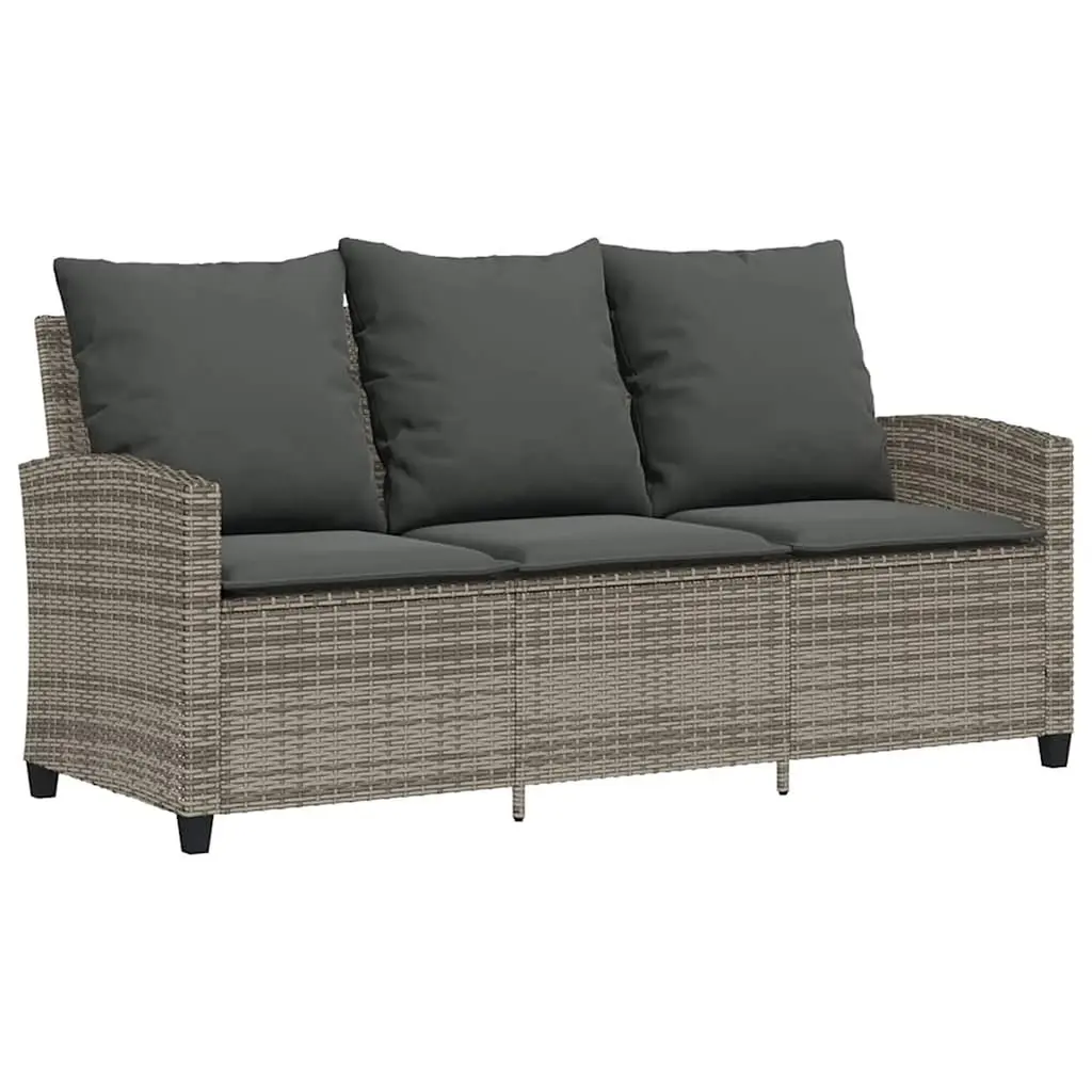 Vidaxl Garden Sofa Grey Pe Rattan 3-Seater Adjustable Feet Garden Sofa