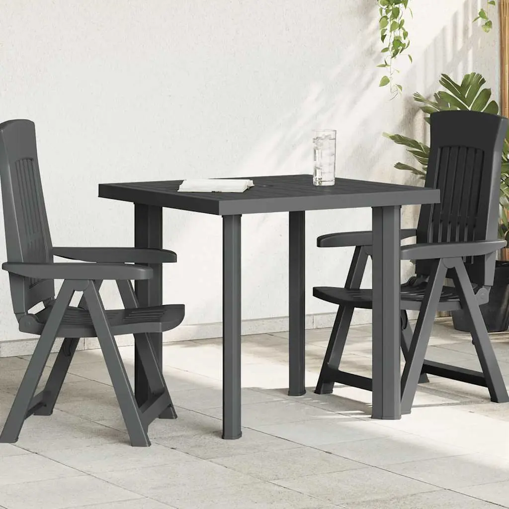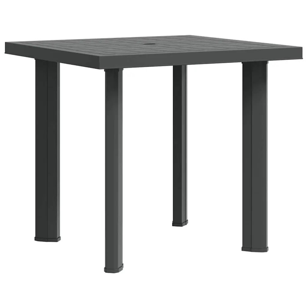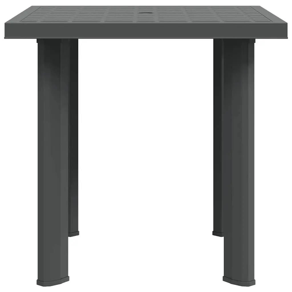 This contemporary garden table mixes style with practicality, making it the perfect addition to your outdoor area. At 31.5 in long and 29.5 in wide, its striking anthracite color and smooth surface provide a chic setting for meals, games, or laid-back gatherings in your garden or on your balcony. Versatile Dining Experience: Perfect for outdoor dining, this table handles al fresco meals, family gatherings, and casual weekend barbecues, creating a welcoming vibe. Durability and Protection: Made from synthetic plastic with UV protection, this piece resists fading and wear, keeping it looking great in any weather. Effortless Maintenance: The matte finish looks modern and makes cleaning easy; just wipe it down with a damp cloth to keep it looking good. Functional Design: Its square shape fits nicely on your patio or balcony, while its lightweight design lets you move it around easily as needed. Functional Dimensions: At 31.5 in long, 29.5 in wide, and 28.3 in high, this table is built for up to four people, perfect for cozy meals.