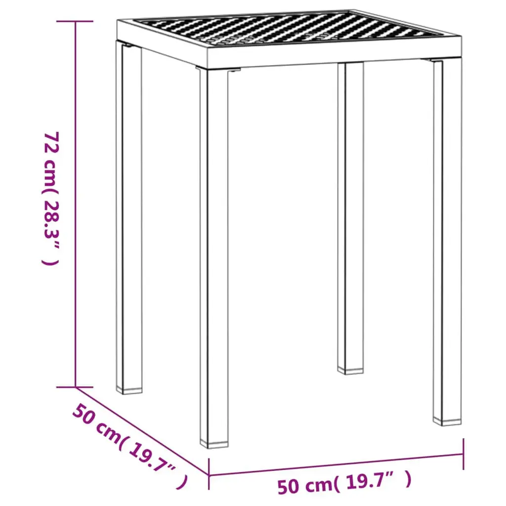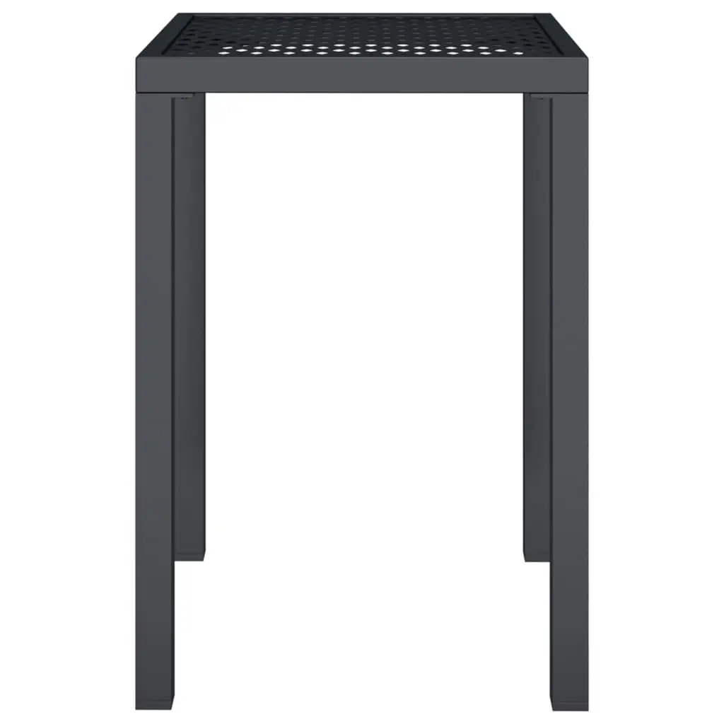This trendy Anthracite Steel Garden Table combines practicality with style, making it spot on for outdoor dining or get-togethers. With its modern square shape and compact size, it slides right into smaller spaces like balconies and patios, offering a lovely spot for meals or coffee in style. Durable Steel Construction: This table boasts a strong steel frame for long-lasting use. Its weather-resistance makes it spot on for outdoor purposes, providing a solid surface whatever the weather. The powder-coated finish means it’s easy to look after and keeps it looking nice over time.Modern Mesh Design: The sleek mesh design not only gives the table a contemporary look but also helps with drainage when it rains. The textured top adds style while ensuring comfort for dining or casual hangs. Its chic appearance matches any outdoor decor, making it a flexible piece.Perfect for Outdoor Gatherings: Fantastic for picnics, barbecues, or enjoying your morning brew outside, this table fits all your outdoor dining needs. It holds up to 165 lb., so it’s stable for various dining occasions, ensuring a nice vibe with friends or family.Compact Dimensions: At 19.7 x 19.7 x 28.3 in., this garden table is made for smaller outdoor spaces without cutting down on function. Its height and width offer just enough room for meals or drinks, making it fab for balconies or snug patios. You can easily move it around to fit what you need.Specifications: Material: Steel | Color: Anthracite | Dimensions: 19.7 in. W x 19.7 in. L x 28.3 in. H | Assembly: Required | Type: Outdoor furniture | Care: A quick wipe with a damp cloth, cover when not in use.