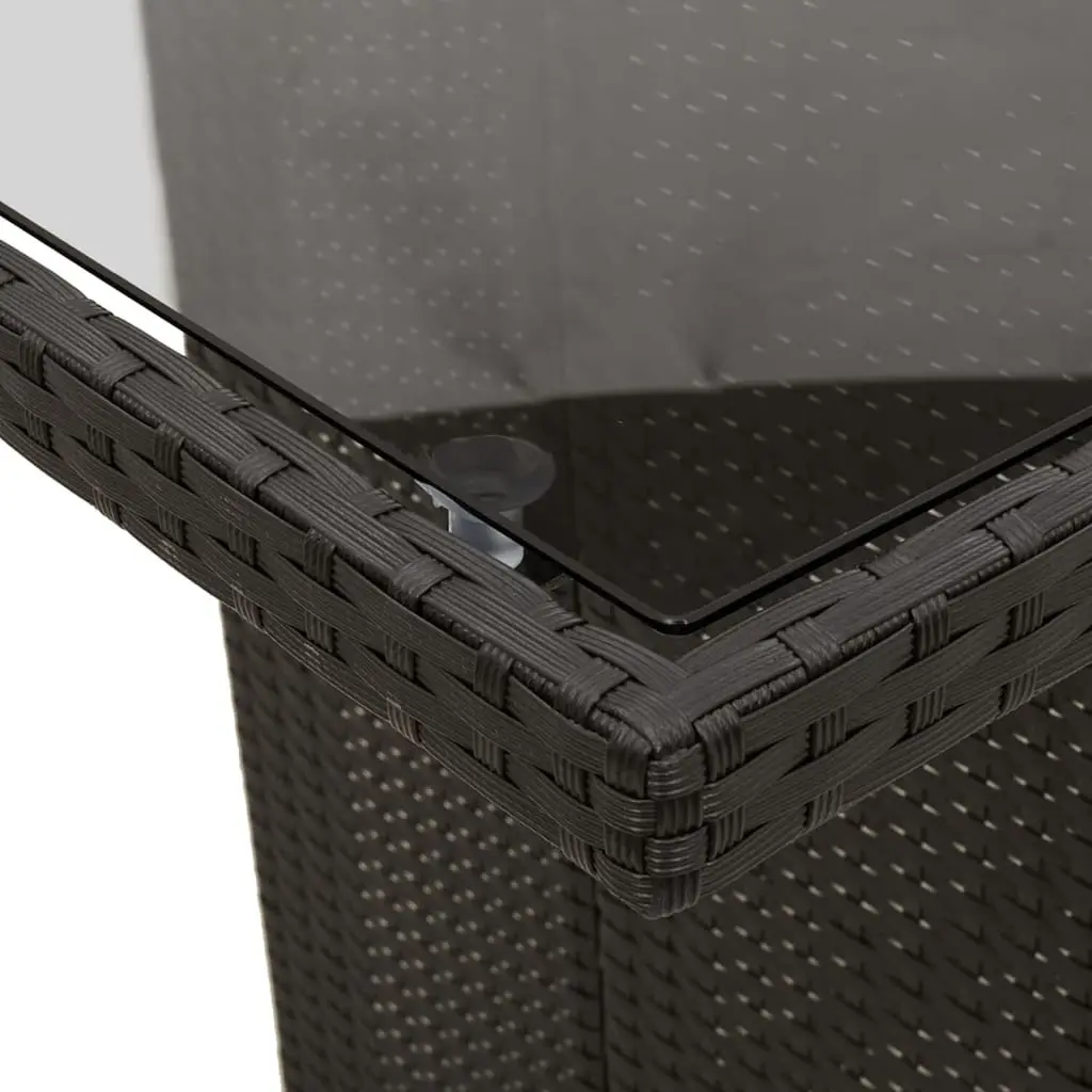 Vidaxl Garden Table Black Pe Rattan, Powder-Coated Steel, Tempered Glass