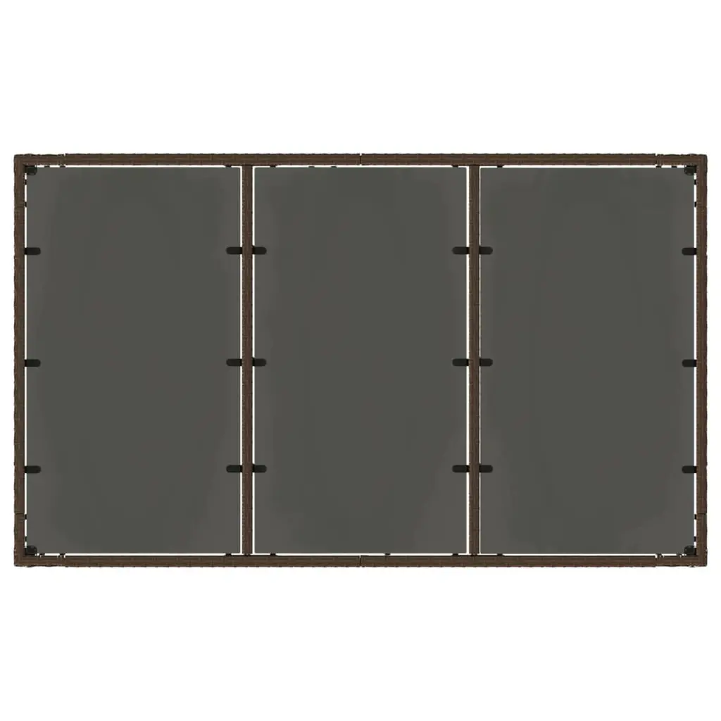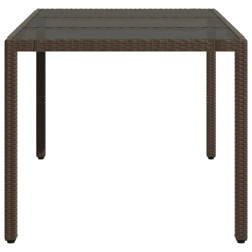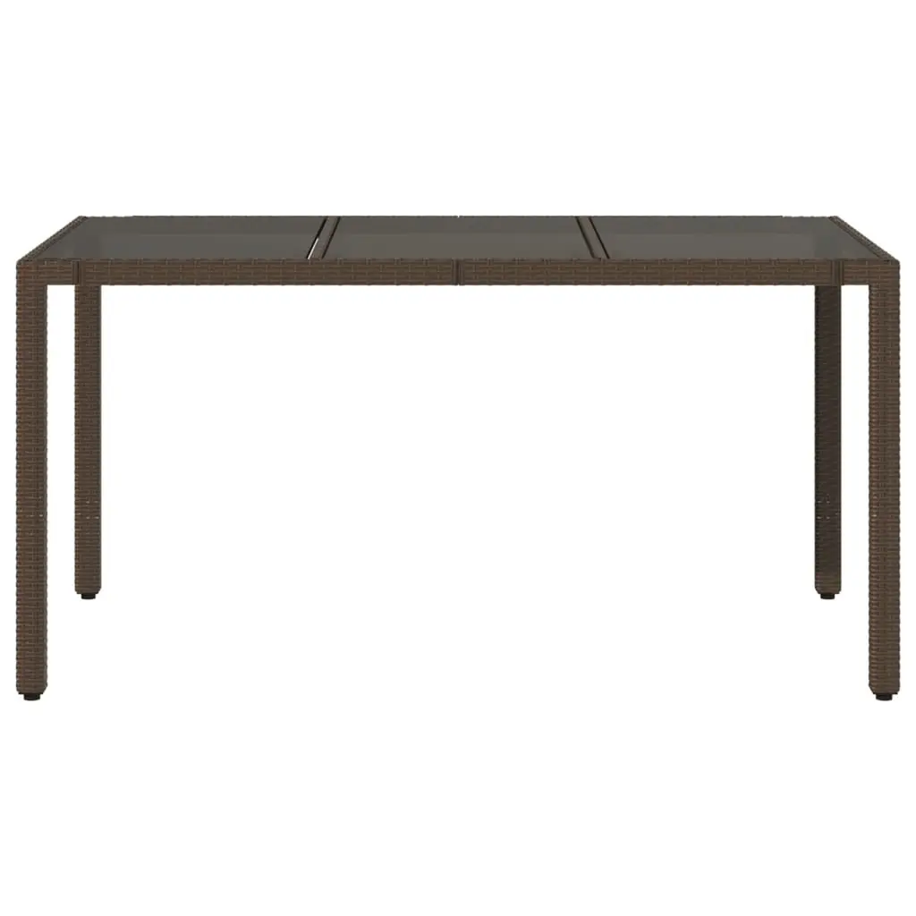 This garden table perfectly mixes style and functionality, making it a great addition to any outdoor space. With its sleek brown poly rattan frame topped off with a transparent tempered glass surface, this table sets the scene for dining or hanging out with friends and family. Its modern design fits right in with any outdoor setting. Durability: Made from UV-resistant materials, this garden table stands up to the sun, keeping its good looks and strength for ages. It's a vital feature for outdoor furniture, so you won't have to replace it regularly due to wear and tear.Stylish Design: The mix of a brown synthetic poly rattan frame and a smooth tempered glass top gives it a classy yet modern vibe, perfect for sprucing up your terrace or balcony. It's sure to be a standout feature at any gathering.Spacious Seating: At 59.1 in long and 35.4 in wide, it comfortably fits six people, making it a great choice for family dinners and outdoor parties. Plenty of room for fun and dining!Easy Maintenance: This table's design makes cleaning a breeze; a damp cloth is all you need to keep it looking sharp. Its solid build means you can enjoy outdoor meals without fretting about spills.Versatile Use: Made for outdoor use, this stylish table works well for all sorts of occasions, whether it's a sunny brunch, a cozy dinner outdoors, or a chill night with friends. It turns outdoor living into a lovely experience.