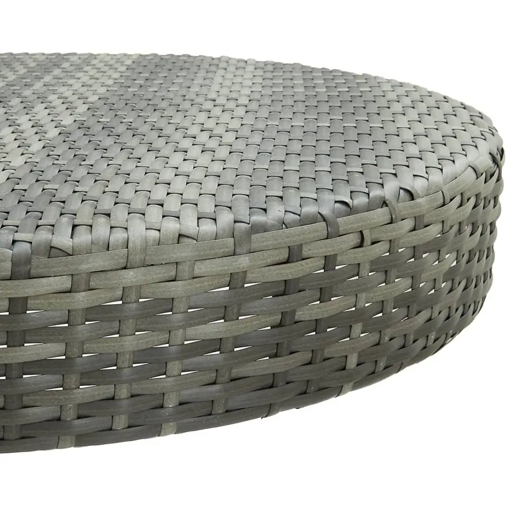 This lovely round garden table is here to turn your outdoor area into a comfy spot for relaxing or having a good time with friends. Its smart grey finish and modern woven design mean it fits nicely with lots of outdoor styles, making it spot on for enjoying coffee or dining under the open sky. Durable Materials: Built from UV resistant poly rattan and powder-coated steel, this table is made to take on different weather and lasts ages while looking good. Modern Aesthetic: With its woven surface and sleek grey finish, this table boosts the style of any outdoor space, making it a fab pick for modern settings. Space-Saving Design: Round tables save space, making this one a great fit for smaller patios or balconies where every inch counts. Easy Maintenance: The synthetic materials mean keeping this table clean is a breeze. Just a quick wipe with a damp cloth keeps it looking great. Versatile Use: Whether for coffee, dining, or just as a cool accent piece, this table does it all and suits up to two people.