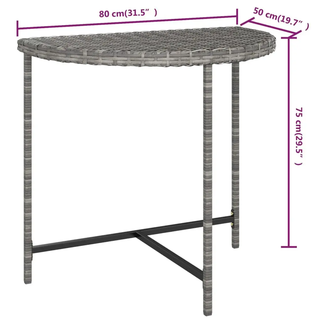 The Grey Poly Rattan Garden Table is an elegant yet functional piece that’ll enhance any outdoor space. Perfect for lazy afternoons or lively garden gatherings, its stylish design and solid build mean it's ready to meet the demands of outdoor living. Durable Construction: The garden table is made with a steel frame that's built to last, giving you peace of mind for outdoor dining.Modern Design: Its sleek grey poly rattan surface brings a touch of contemporary style, making it a top pick for any patio or balcony.Weather Resistant: Made to take on the outdoors, this table is perfect for various weather conditions, letting you enjoy meals outside all year round.Spacious Surface: At 31.5x19.7 in, it comfortably seats four, making it great for family dinners or hosting friends.Low Maintenance: The materials used are easy to clean, needing just a mild soap solution to keep it looking its best.