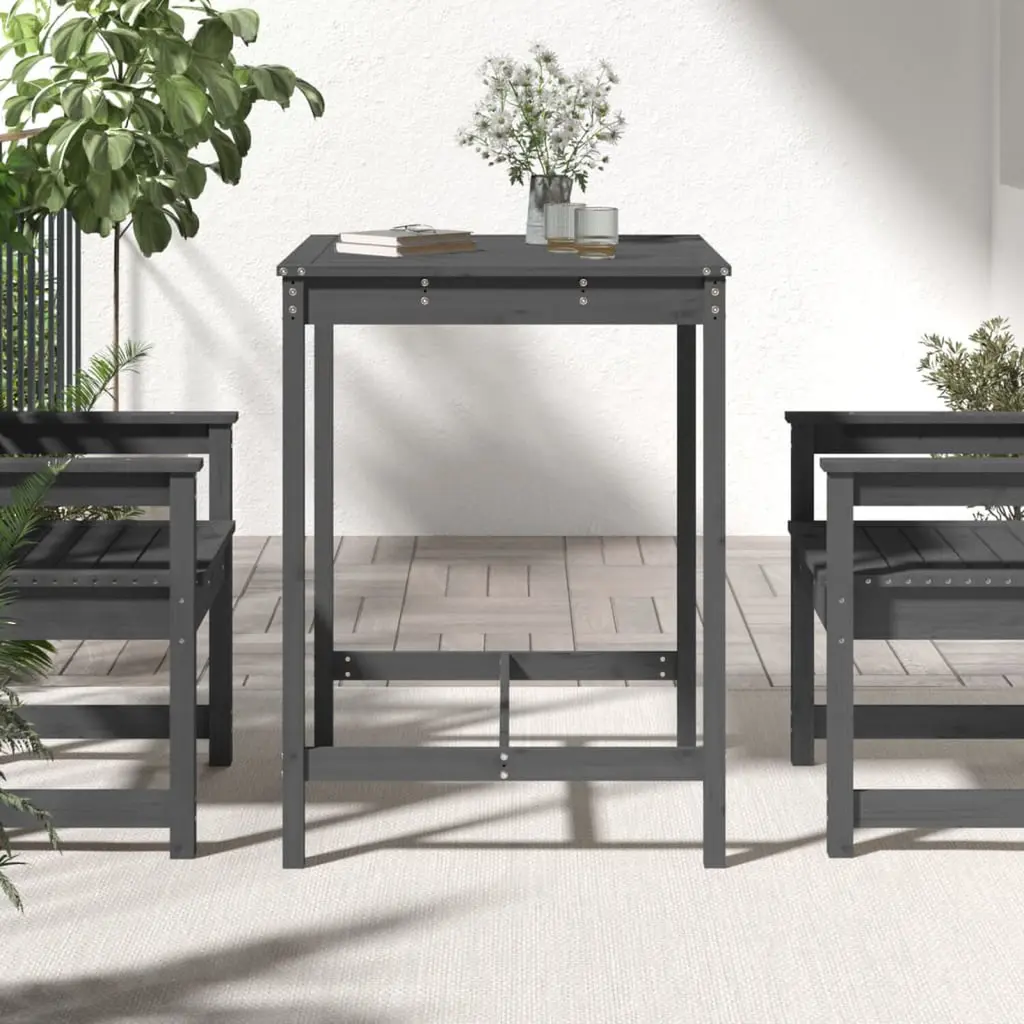 This Grey Solid Pine Outdoor Garden Table is a lovely addition to your outdoor furniture. Built from solid pine wood, it's tough enough for the weather while bringing rustic charm to gardens, balconies, or patios. High-Quality Material: Made from solid pine wood, featuring a smooth texture and natural grain for added appeal.Versatile Use: Perfect for dining with family or friends, accommodating up to six people comfortably.Weather Resistant: Built to withstand UV rays and harsh weather, keeping your table looking great outside.Rustic Finish: The rustic style makes it stand out against green landscapes, becoming a focal point in your garden.Compact Size: Measuring 32.5 in square and 43.3 in tall, it's a great fit for smaller outdoor spaces without sacrificing comfort.
