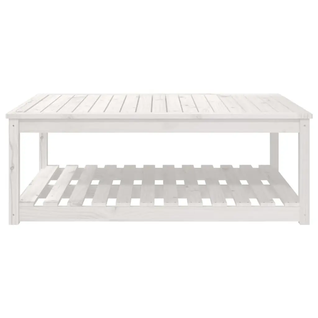 This rustic white garden table is the perfect mix of style and function, making it a great addition to your outdoor space. Its solid pine wood build not only looks lovely but is also durable for regular use in gardens, balconies, or terraces. Sturdy Construction: Built from strong solid pine wood, this garden table is made to last and can handle the outdoor elements.Sleek White Finish: The smooth, painted surface gives a polished look, blending nicely with nature.Convenient Open Shelf: The open shelf makes it easy to grab your outdoor gear, keeping everything organized.Size Accommodates Four: Its generous size of 47.6 in by 32.5 in is perfect for family dining or gatherings with friends.Easy Maintenance: The varnished surface is simple to clean and care for, so your table stays looking good with minimal fuss.