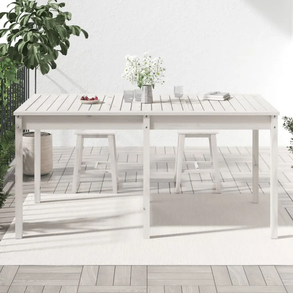 This White Solid Pine Garden Table is a stunning addition to your outdoor space, mixing style and practicality. Perfect for dining, this rectangular table sets just the right mood for family get-togethers, barbecues, or enjoying a meal outside. The modern design complements various outdoor styles while providing a spacious surface for dining.Crafted from solid pine wood, this table is built to last and keep its charm.Its UV-resistant feature means it stays looking great, making it a top choice for outdoor furniture.With enough room for six, this table is perfect for meals and get-togethers.Measuring 62.8 in long and 31.5 in wide, it’s ideal for patios, balconies, or gardens.