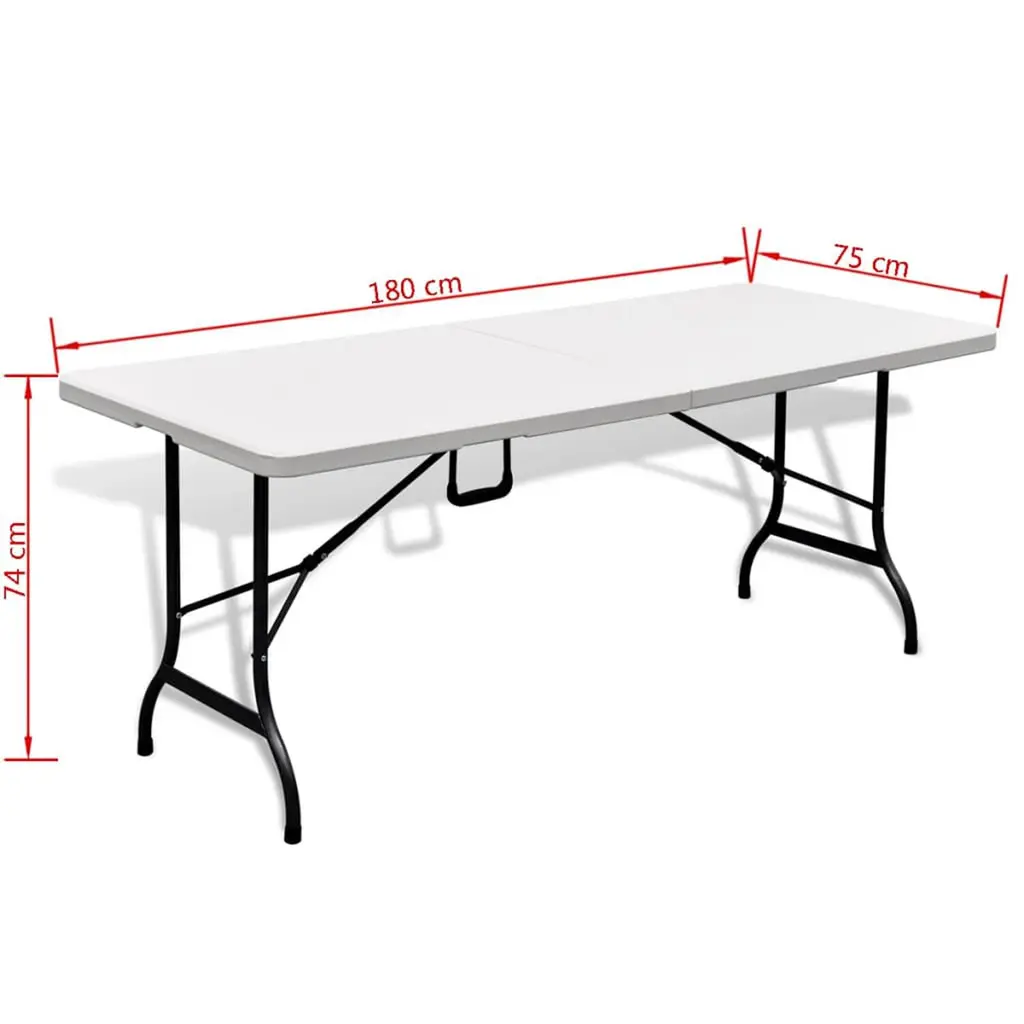 This folding garden table combines function and style, making it spot-on for all sorts of events. With its chic white surface and sturdy black powder-coated steel frame, it provides a stylish yet practical option for dining, entertaining, and enjoying outdoor fun. Adjustable Height: You can easily tweak the table to the right height, perfect for different seating setups and personal preferences. Portable Feature: With a built-in carrying handle, this folding table is a breeze to transport, ideal for camping, picnics, and outdoor parties. Durable Surface: The HDPE surface offers a smooth finish that’s easy to clean and stands up to the weather. Stable Structure: Made with a tough steel frame, this table can support up to 165.3 lbs, making it reliable for serving food and drinks at gatherings. Space-Saving Design: When you're done using it, just fold it down to save space, making it perfect for homes with limited storage.