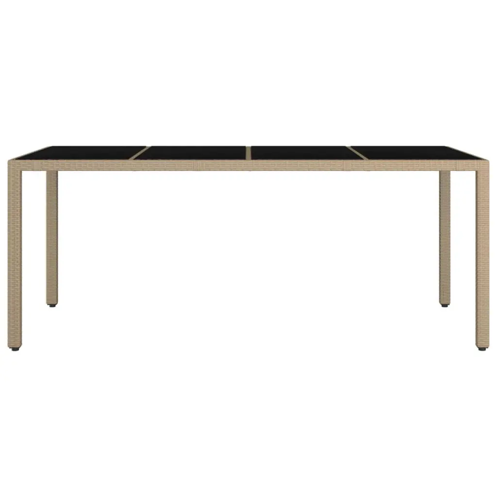 Vidaxl Garden Table With Glass Top Beige Poly Rattan, Steel, Tempered Glass