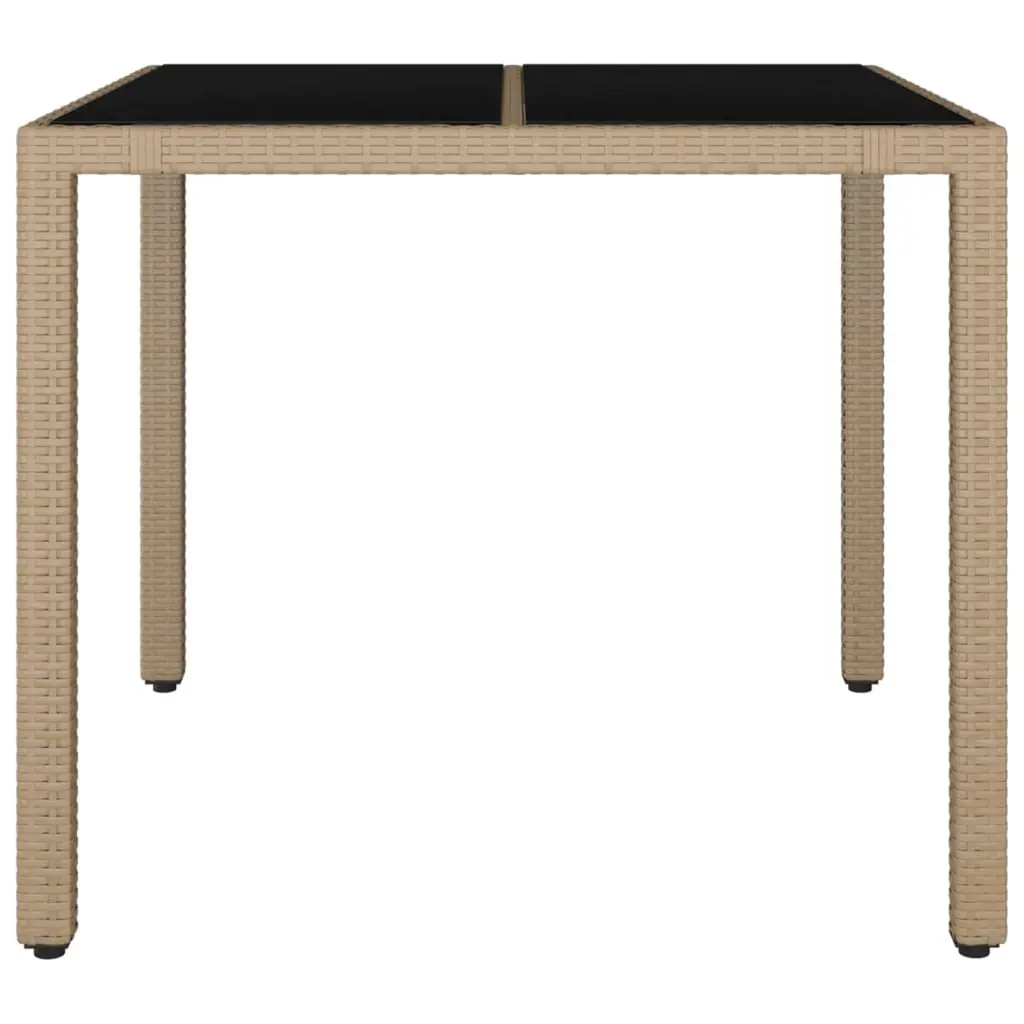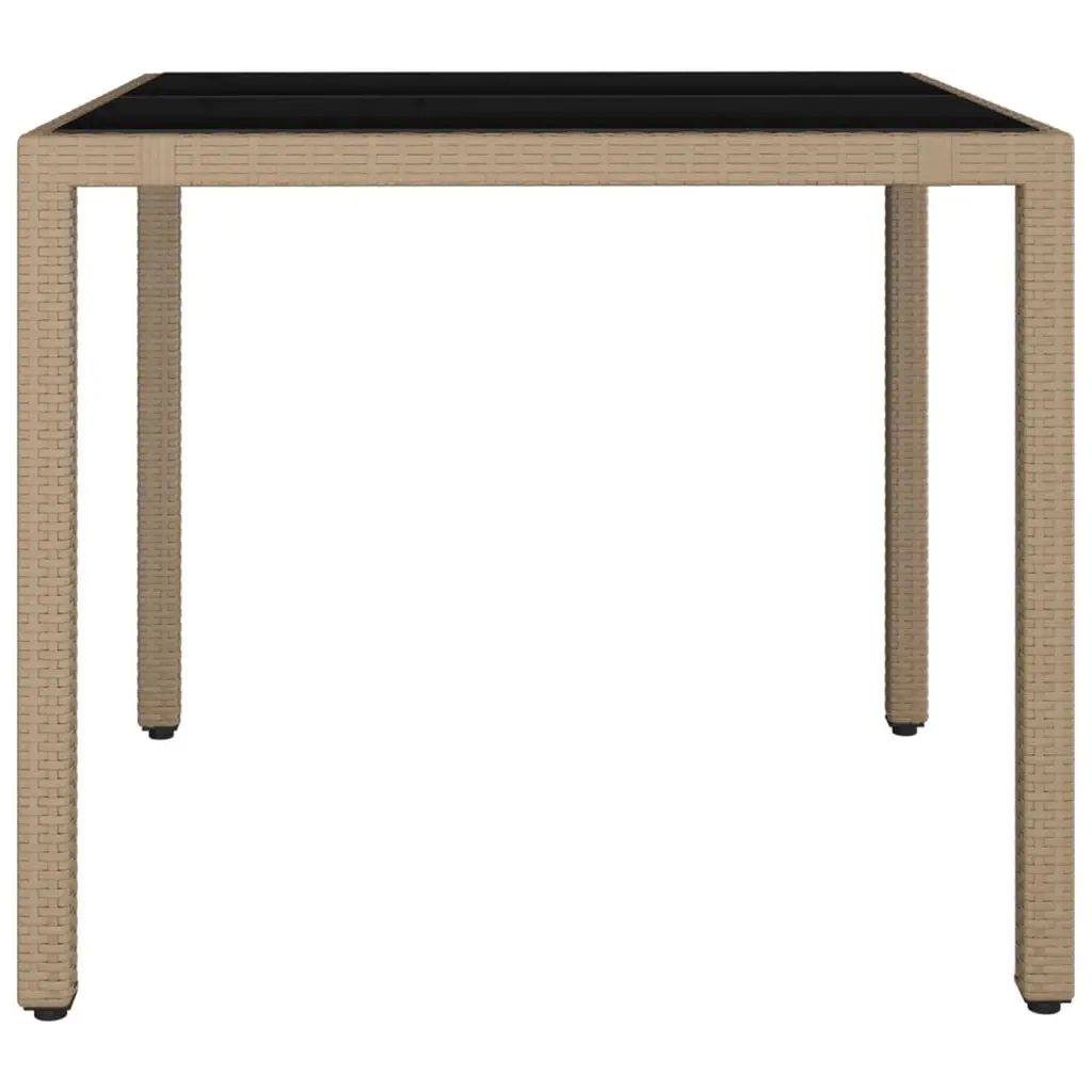 Vidaxl Garden Table With Glass Top Beige Poly Rattan, Tempered Glass