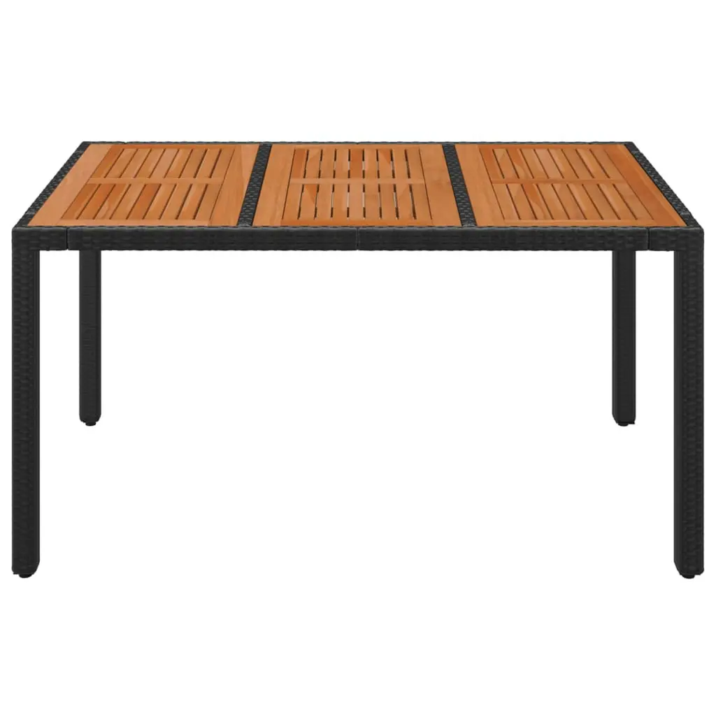 This garden table mixes solid acacia wood with a strong poly rattan frame, perfect for making your outdoor meals top-notch. It fits six people easily, giving you a lovely spot for meals in your garden, balcony, or patio. Weather Resistance: Made with materials that repel water, keeping it functional even in the changeable weather. Generous Dimensions: At 59.1 in long and 35.4 in wide, it’s got tons of room for dining and activities, making it essential for your outdoor area. Sturdy Frame: Built from powder-coated steel, it’s got the durability and stability you need, even when the weather’s not cooperating. Elegant Appearance: The mix of black and brown tones gives it a slick look that matches modern outdoor decor. Easy Maintenance: Just a quick wipe is all it takes, making it a breeze to care for and enjoy season after season.