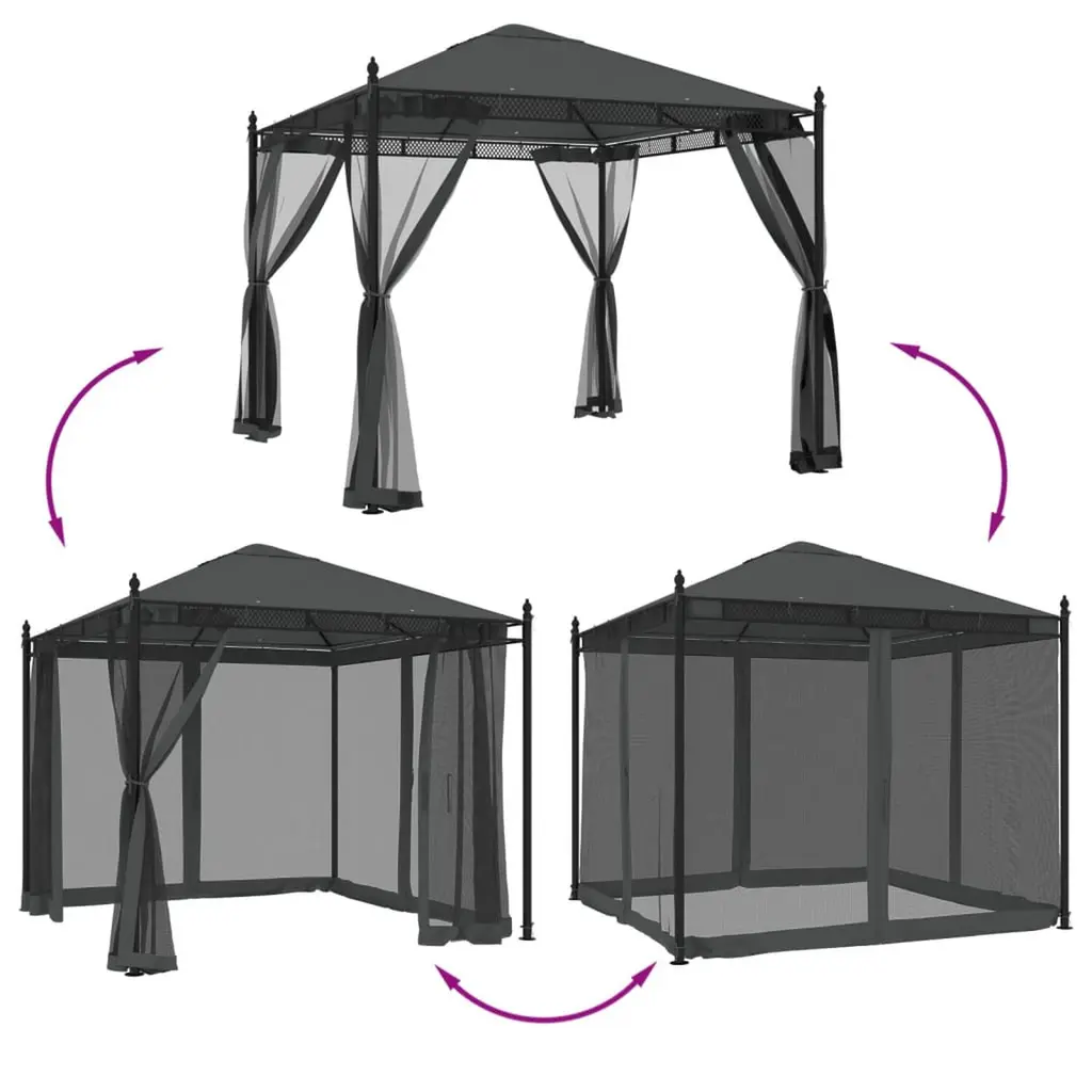 Vidaxl Gazebo With Mesh Walls Anthracite 9.6'x9.6' Steel