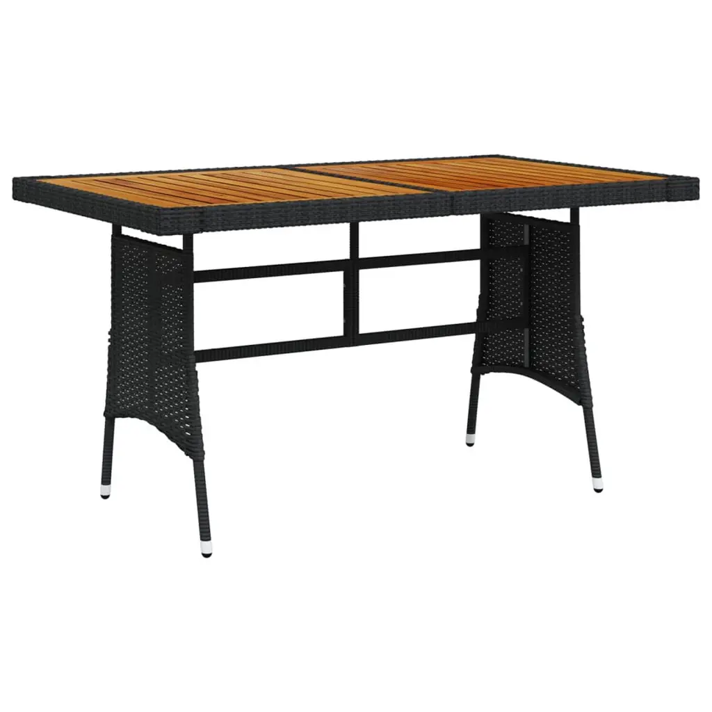 Vidaxl Outdoor Table Black Poly Rattan And Solid Acacia Wood Medium
