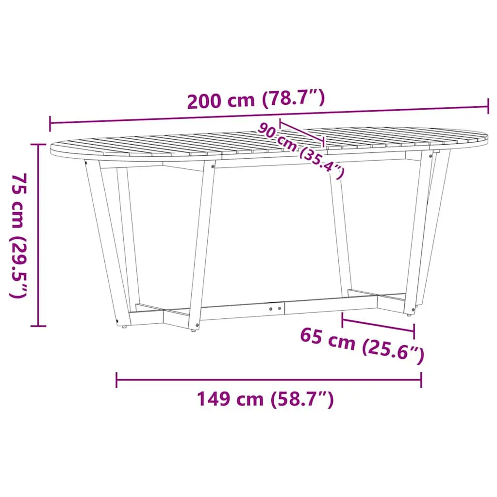 Vidaxl Patio Dining Table Oval 78.7x35.4x29.5" Solid Wood Acacia