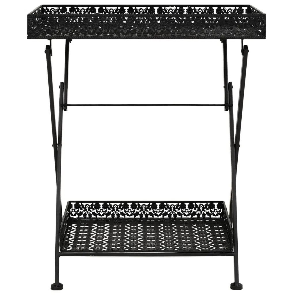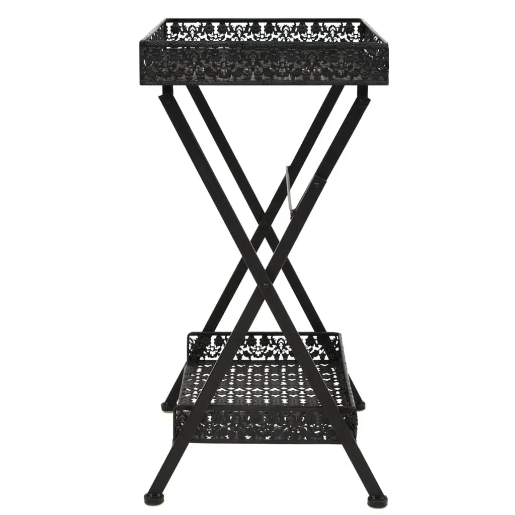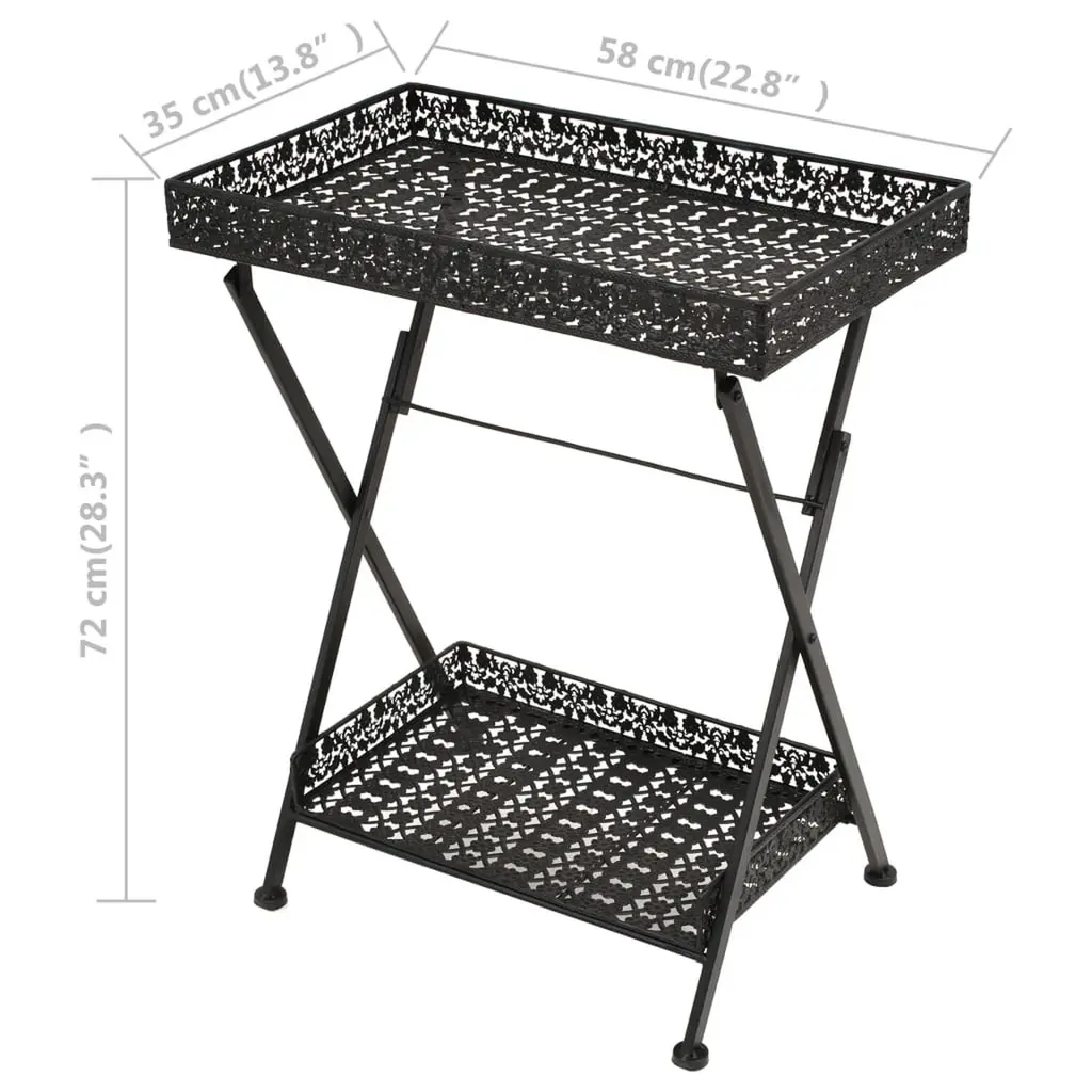 Vidaxl Table Black Metal 22.8x13.8x28.3 In Foldable Tea Table