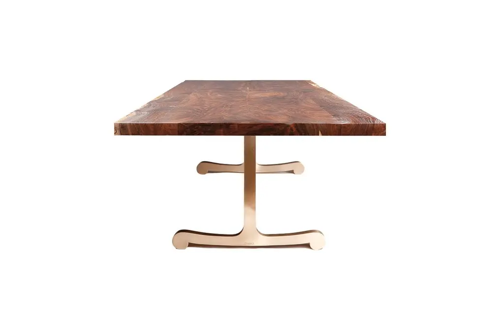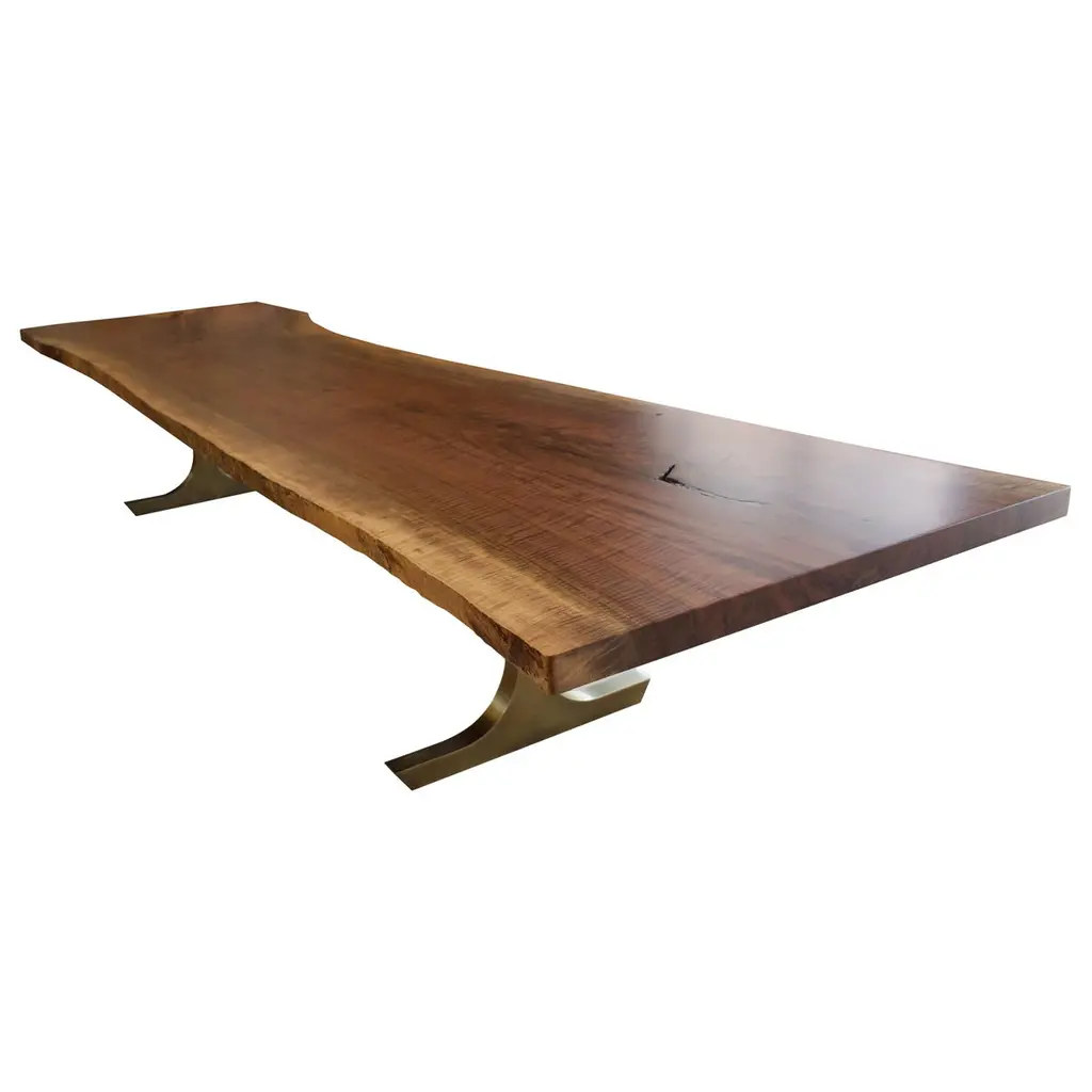 Vienna Dining Table With Brushed Bronze Legs And Live Edge Walnut Top