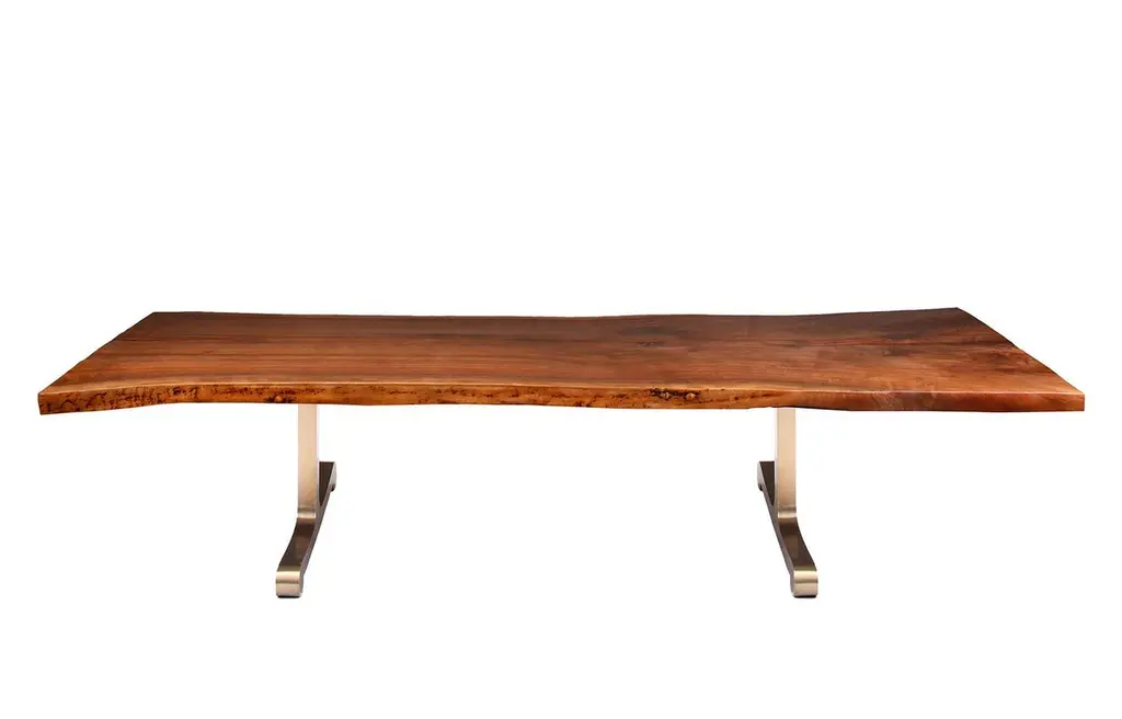 With it’s elegant curves and clean lines, the VIENNA Dining Table is a perfect fit for interiors that exhibit a sensuous and sophisticated design aesthetic.The scroll motif has echoed through the history of architecture and design as a symbol for fluidity, harmony and the refinement of the hand-drawn line. For this piece, Florian sought inspiration from the Biedermeier design movement [1815-1850 Germany/Austria] which emphasized simplicity, refined elegance and high-qulaity craftsmanship. Biedermeier was a counter-reaction to centuries of ornamentation and decoration, and thus one of the pioneers of Modern Design.The live edge Claro Walnut slab is finished with a silky smooth hand-rubbed oil finish which begs to be touched. We have one of the largest inventories of Claro Walnut slabs in the world! Available lengths from 8ft to 16ft.Please inquire for custom slab sizes.