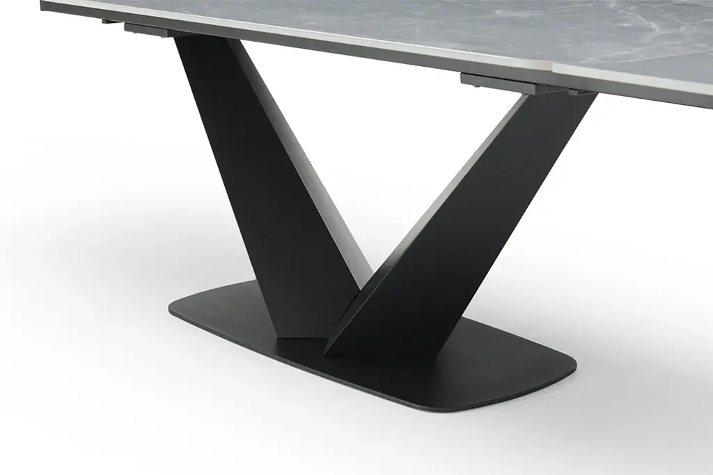 The Vieno Extendable Dining Table with a solid Chinese ceramic matte dark grey marble pattern is a true masterpiece that effortlessly combines contemporary elegance with practicality. This exquisite dining table is thoughtfully designed to enhance your dining experience and elevate the ambiance of your dining area.