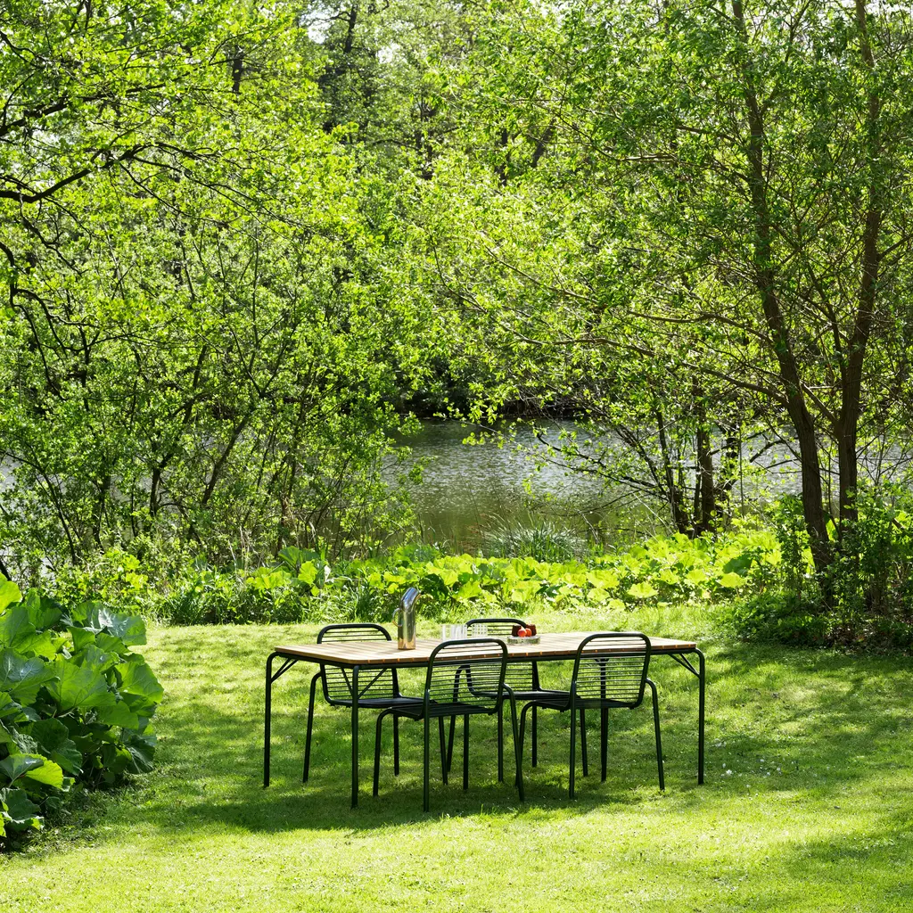 The Vig Stacking Table is a versatile outdoor dining option crafted from durable double powder-coated steel, making it ideal for extended outdoor use while maintaining its sleek appearance. Its stackable design makes it highly functional for flexible dining arrangements. The tabletop is made from oiled robinia, free of excessive decoration, highlighting the refined take on outdoor dining. Available in colors black, grey, and dark green, the Vig collection offers a cohesive collection of outdoor furniture. Available in 3 sizes.