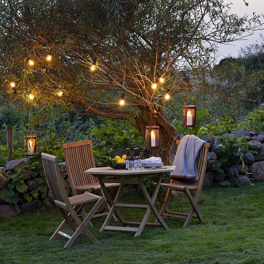 A dining series in teak. The chair is made entirely from teak, as is the table – apart from a couple of screws to secure the table top to the legs. The Viken Table is available in two different sizes.