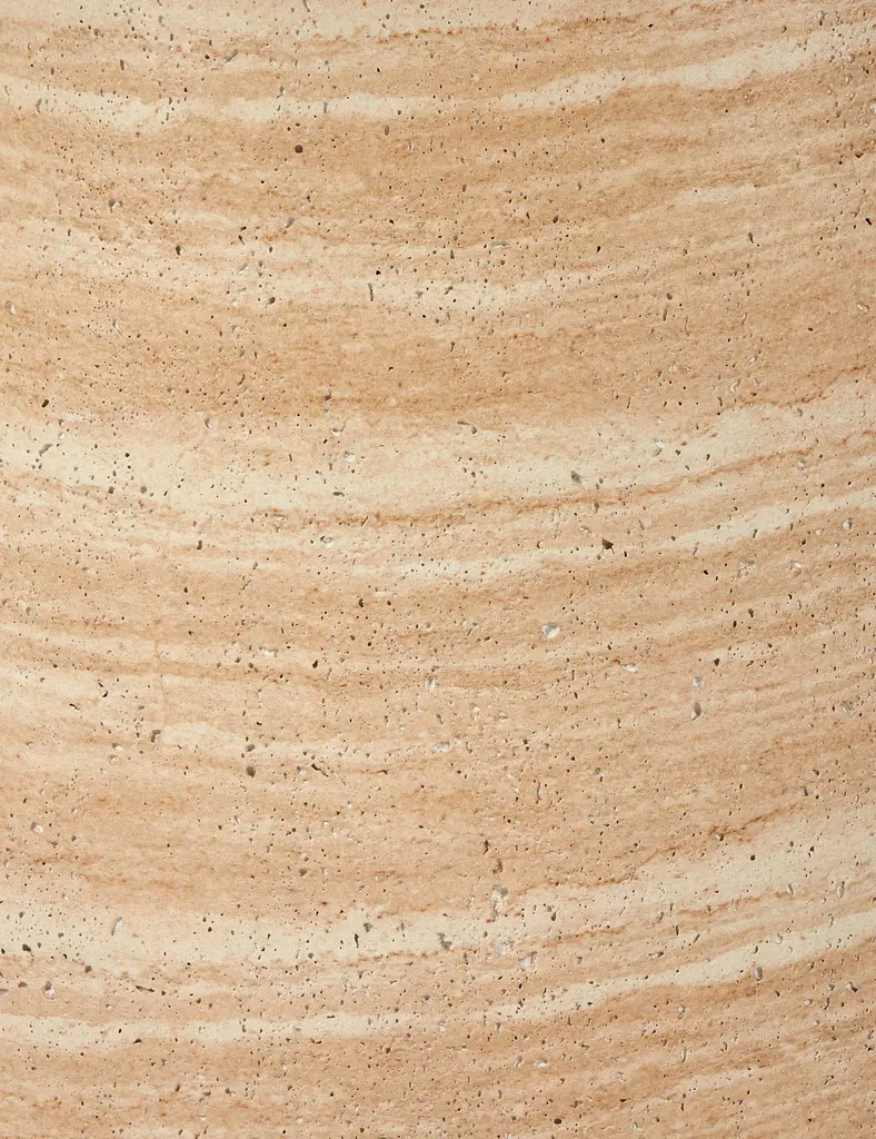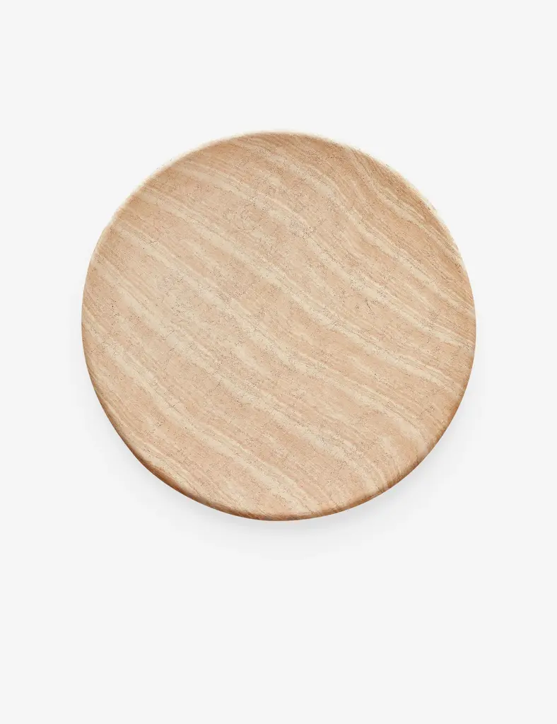 Concrete is transformed in this sculptural dining table. A round slab sits atop a domed pedestal, finished to reflect the mineral textures and tones of travertine. This table is the perfect centerpiece for a refined yet grounded dining space.