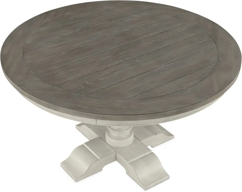 The Vineyard Round Dining Table channels a cozy farmhouse appeal with gentle curves, lots of style and endless functionality.