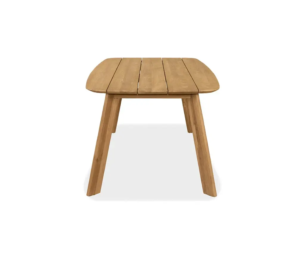 Airy, angled legs and a sleek profile give the Vinicio Outdoor Dining Table a modern look that will effortlessly extend your contemporary aesthetic outdoors. Crafted of solid teak for all-season durability, the finish highlights the wood grain for added character and elegance. Be sure to mix and match it with other pieces in the Vinicio Outdoor Collection for a complete look.