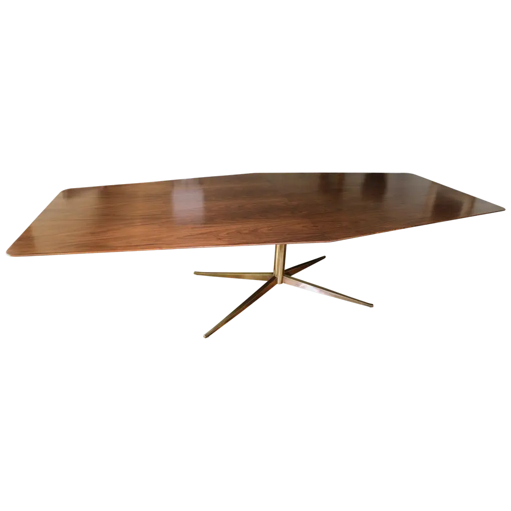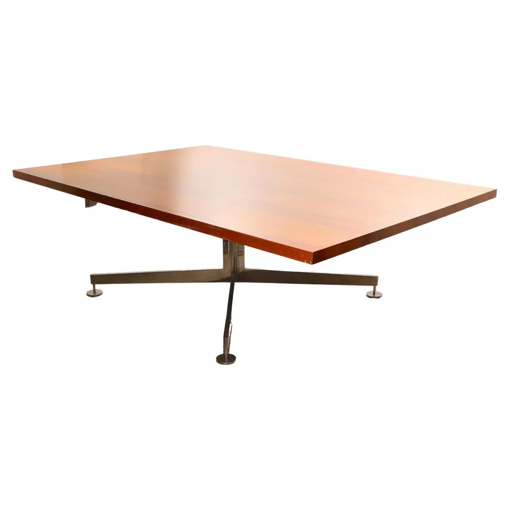 A vintage dining or conference table or a desk. Beautiful Knoll top made of American Walnut on a Herman Miller aluminum segmented base. We have 8 available.