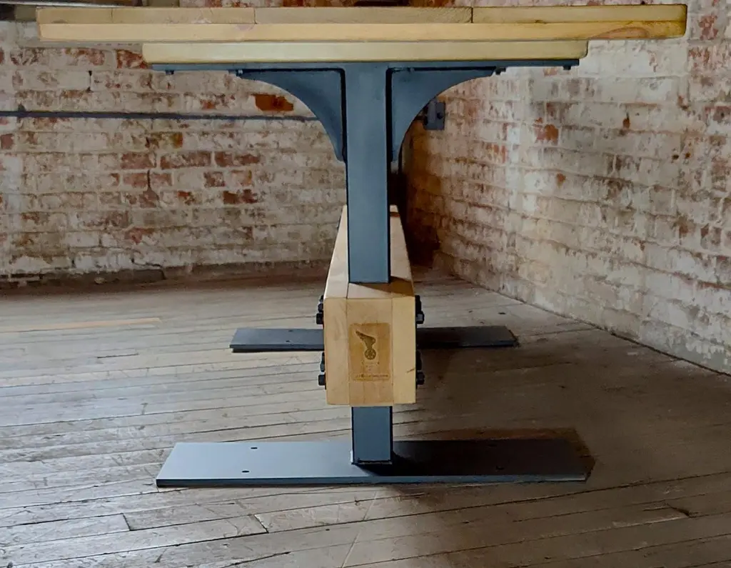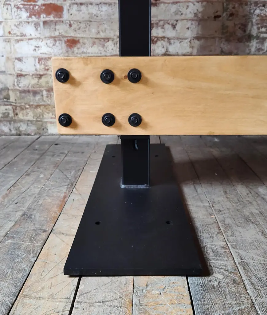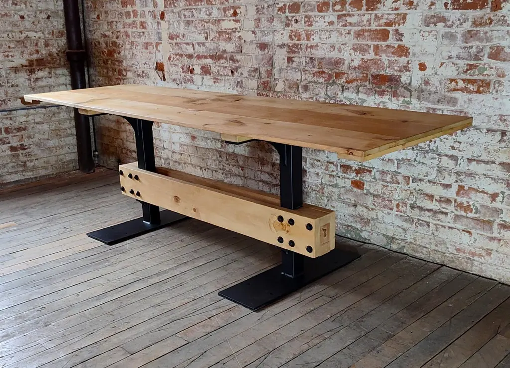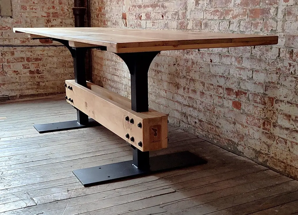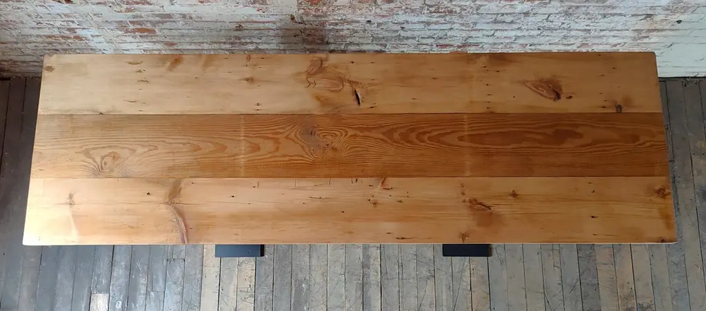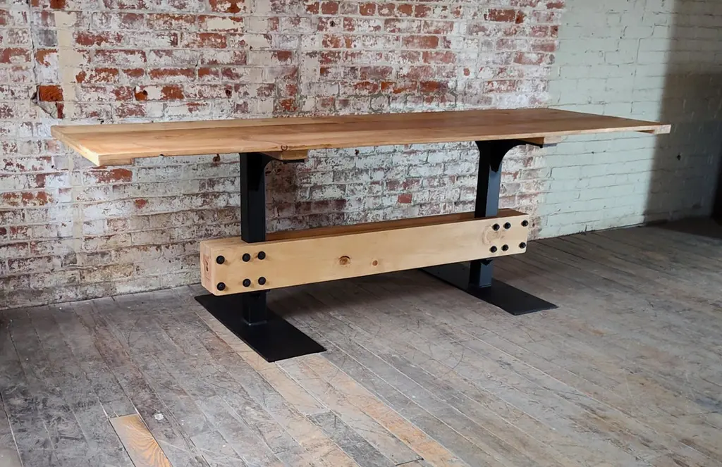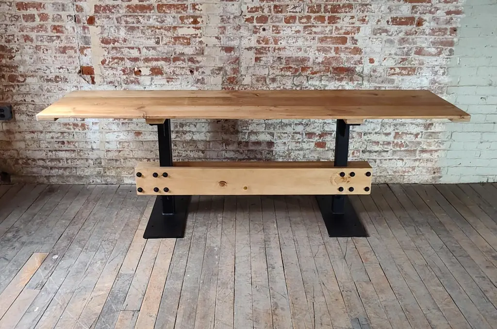 Reclaimed Pine & Steel Double Pedestal Dining / Buffet TableMade to order and the size is customizableOverall Dimensions: 30" x 96" x 30" highMaterials: Pine & Steel
