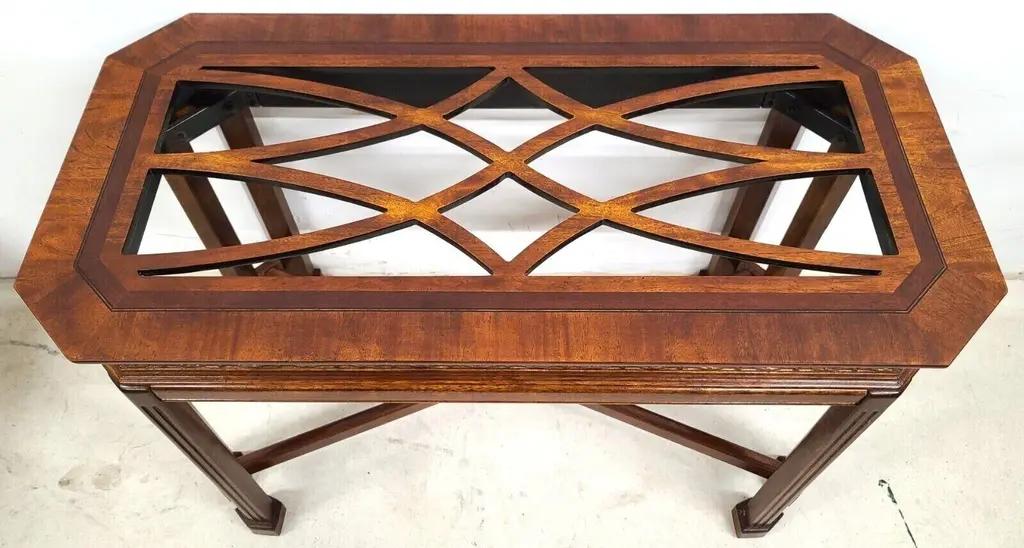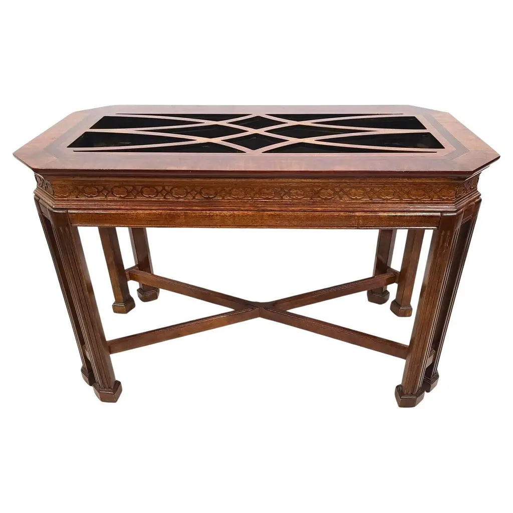 Offering One Of Our Recent Palm Beach Estate Fine Furniture Acquisitions Of A Vintage Console Dining Table Base by UNIVERSAL FURNITURE This is a very strong and well-built piece capable of supporting a large, heavy piece of glass. It was originally acquired as a dining table with a 72" x 42" piece of glass which is still available with local pickup only. It would also work well as a console or sofa table. Approximate Measurements In Inches 29" high x 22" deep x 42.75" wide Condition In good, structurally sound, and sturdy condition with no notable damage. The photos are an important part of the item description and condition so please use the zoom feature to view them closely. We have many other similarly styled furniture pieces listed. To see them, click on "Palm Beach Home Furnishings" below, where you can also follow us and be notified whenever we post new items. We appreciate your business and will do everything possible to make sure you are a happy customer. Local pickup and delivery are available.
