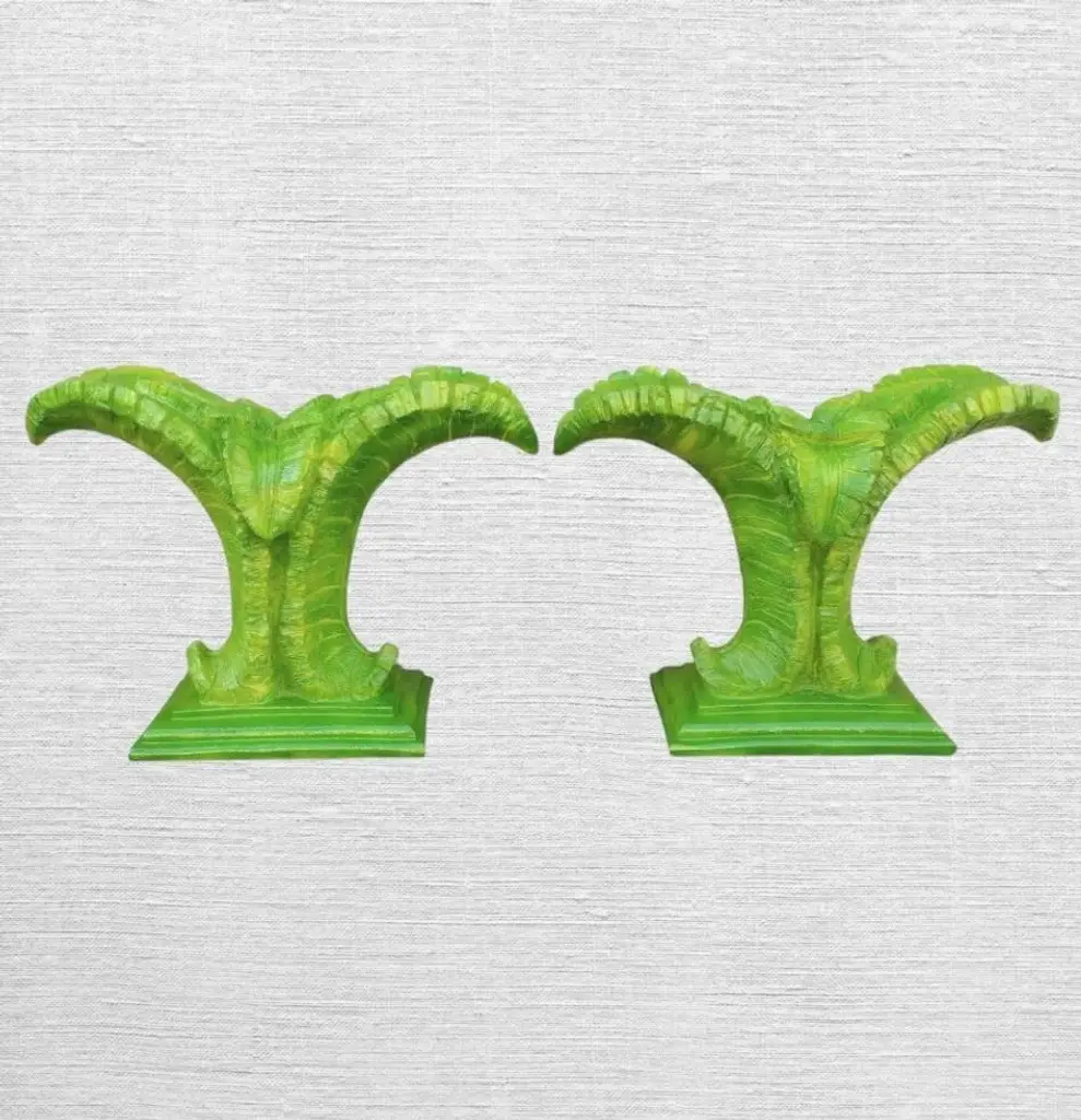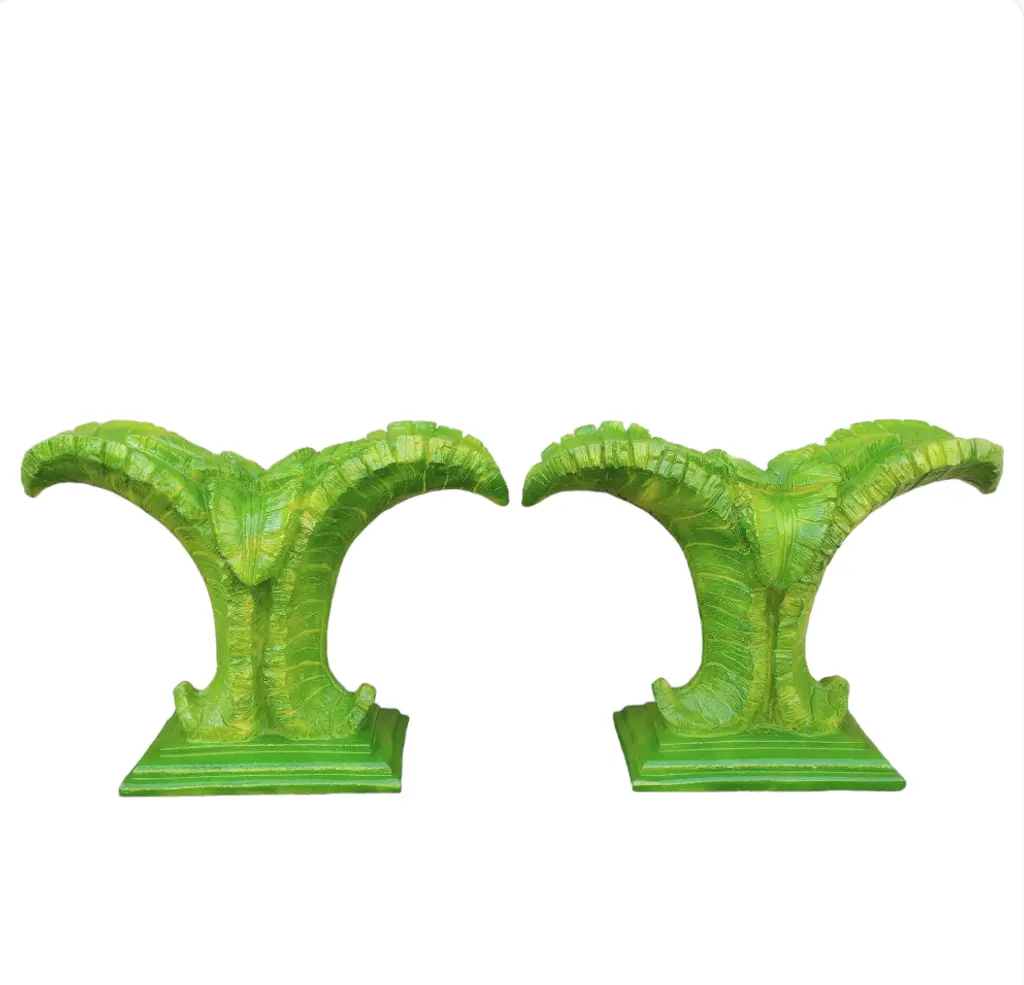 Vintage Plaster Hand Painted Palm Beach Regency Green Serge Roche Style Palm Frond Console Dining Room Table Base 2 Available