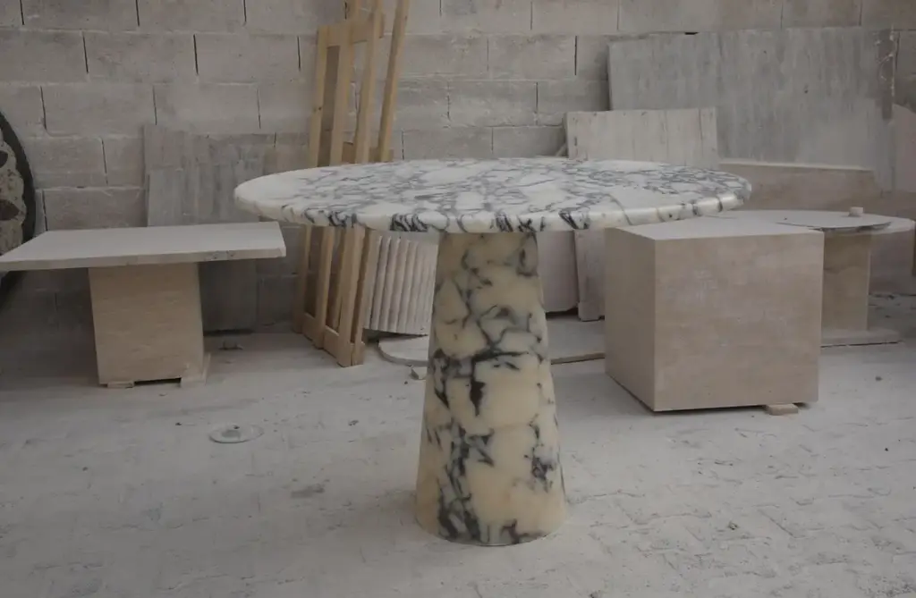 Viola Veined Violet Round Dining Table By Angelo Mangiarotti