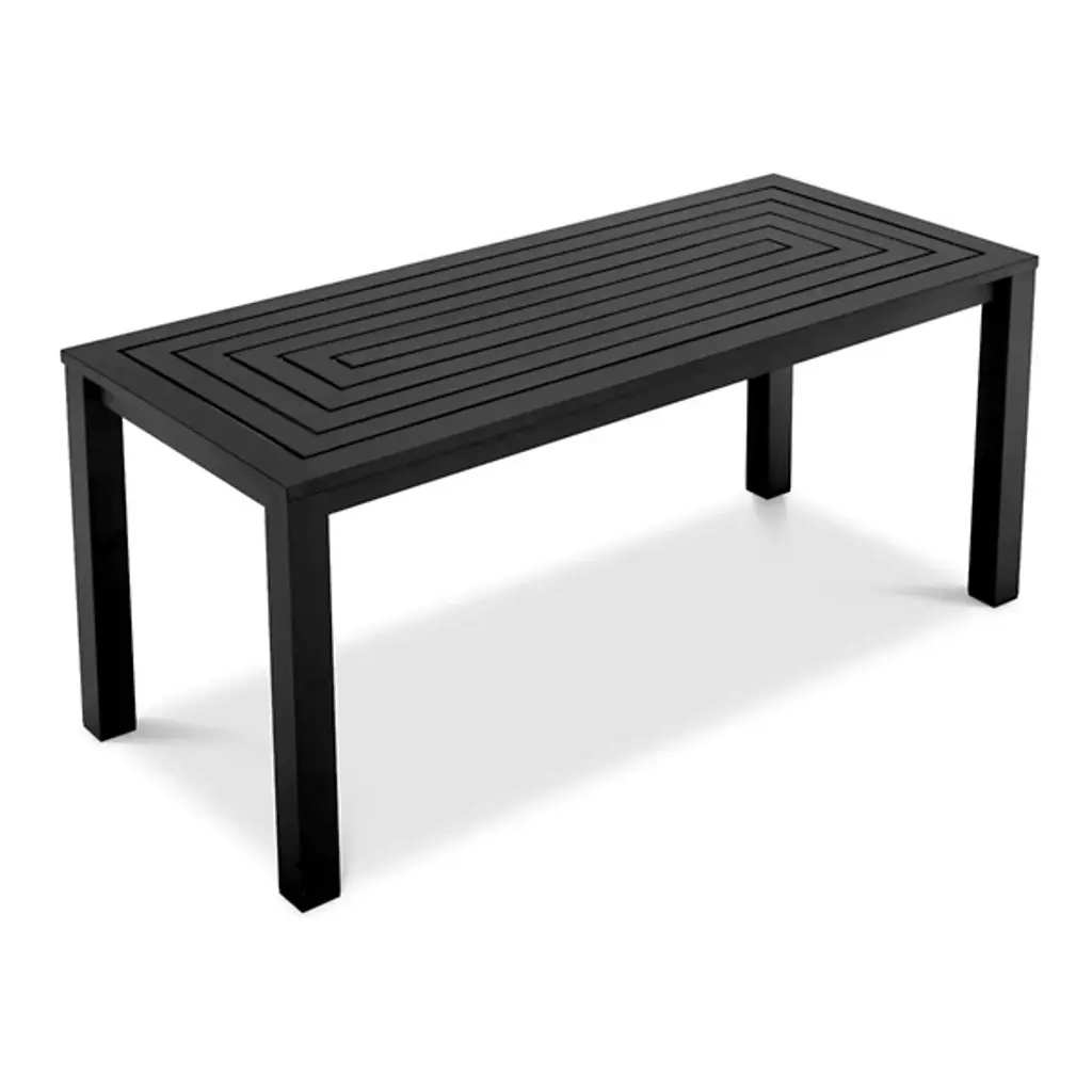 The Vistamar Outdoor Dining Table from Eichholtz is optimized for elevating outdoor gatherings. This contemporary dining table enhances your outside spaces with a textured finish and decorative concentric frames. Each table is made from durable aluminum with a textured finish and is built to withstand the elements, enabling long-term use. No matter where it's set up, this table makes anywhere it's installed an outdoor oasis.