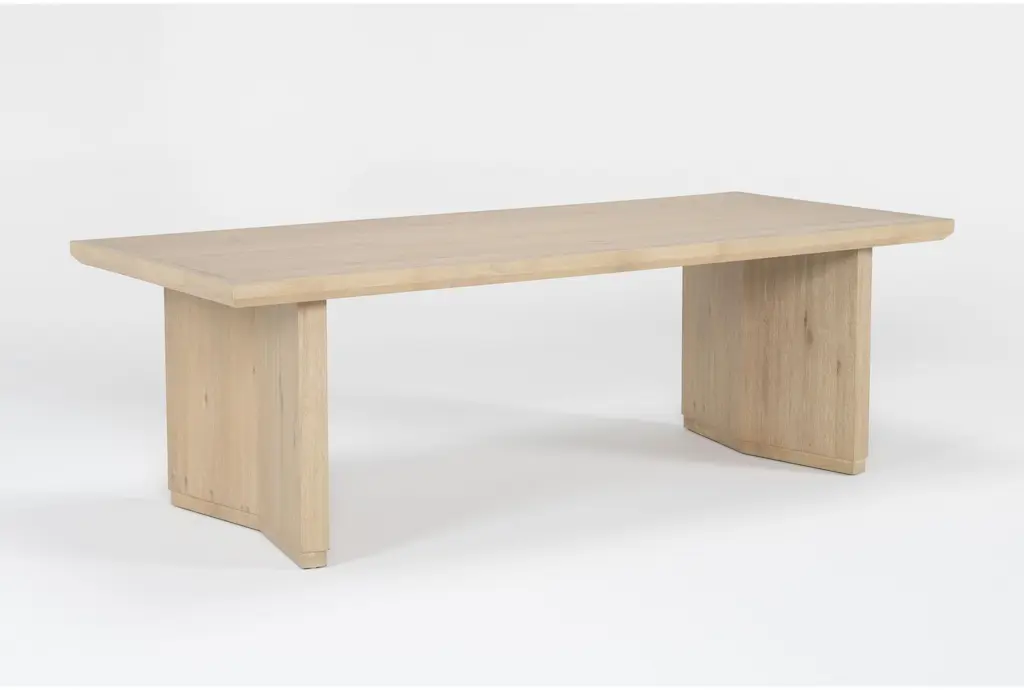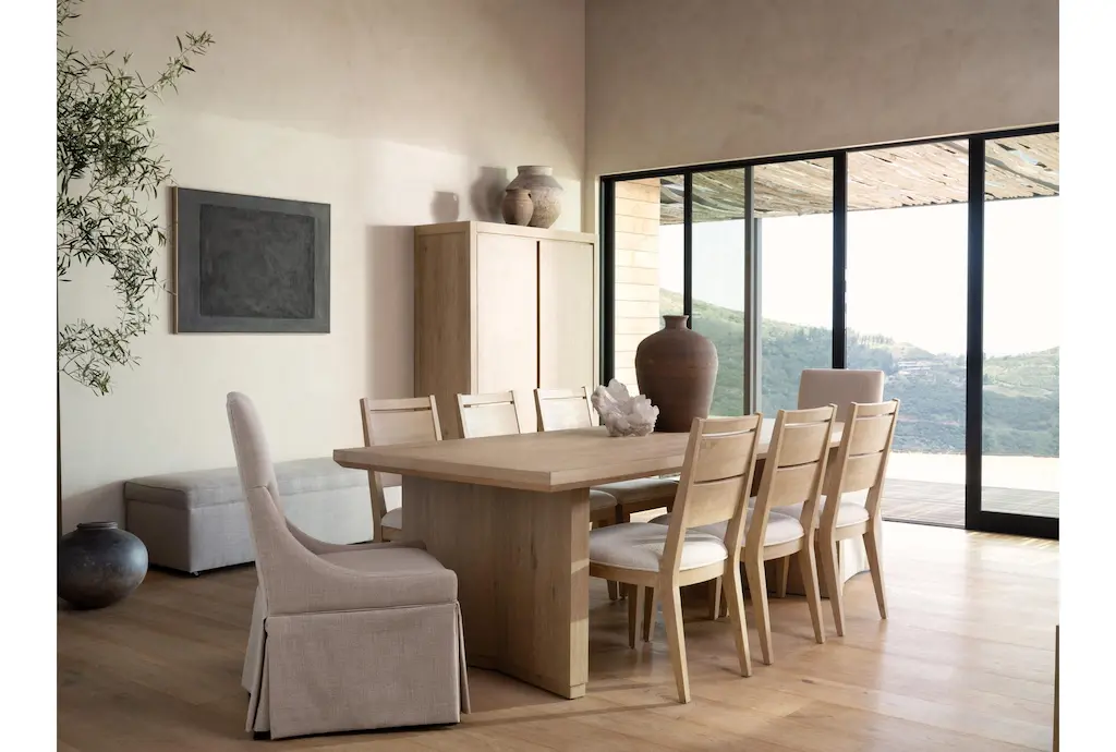 Voyage Natural Beige Wood 94" Rectangular Trestle Dining Table By Nate Berkus + Jeremiah Brent | Double Pedestal | Pedestal