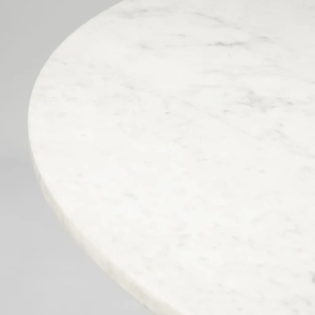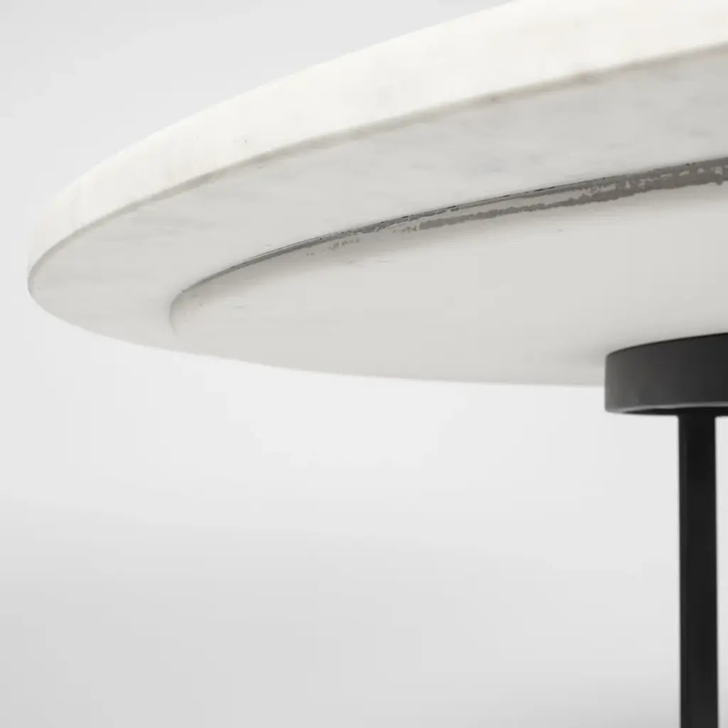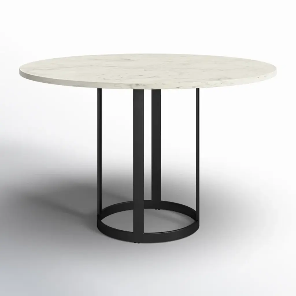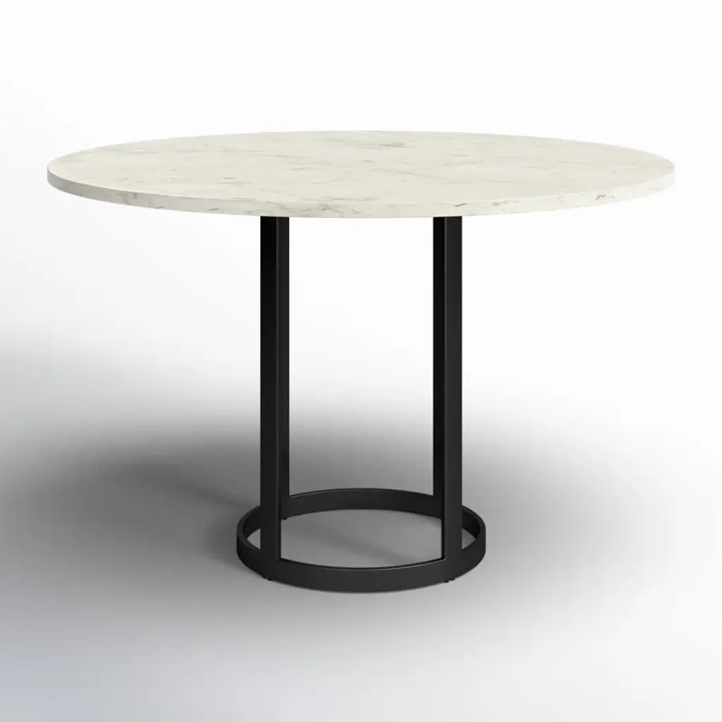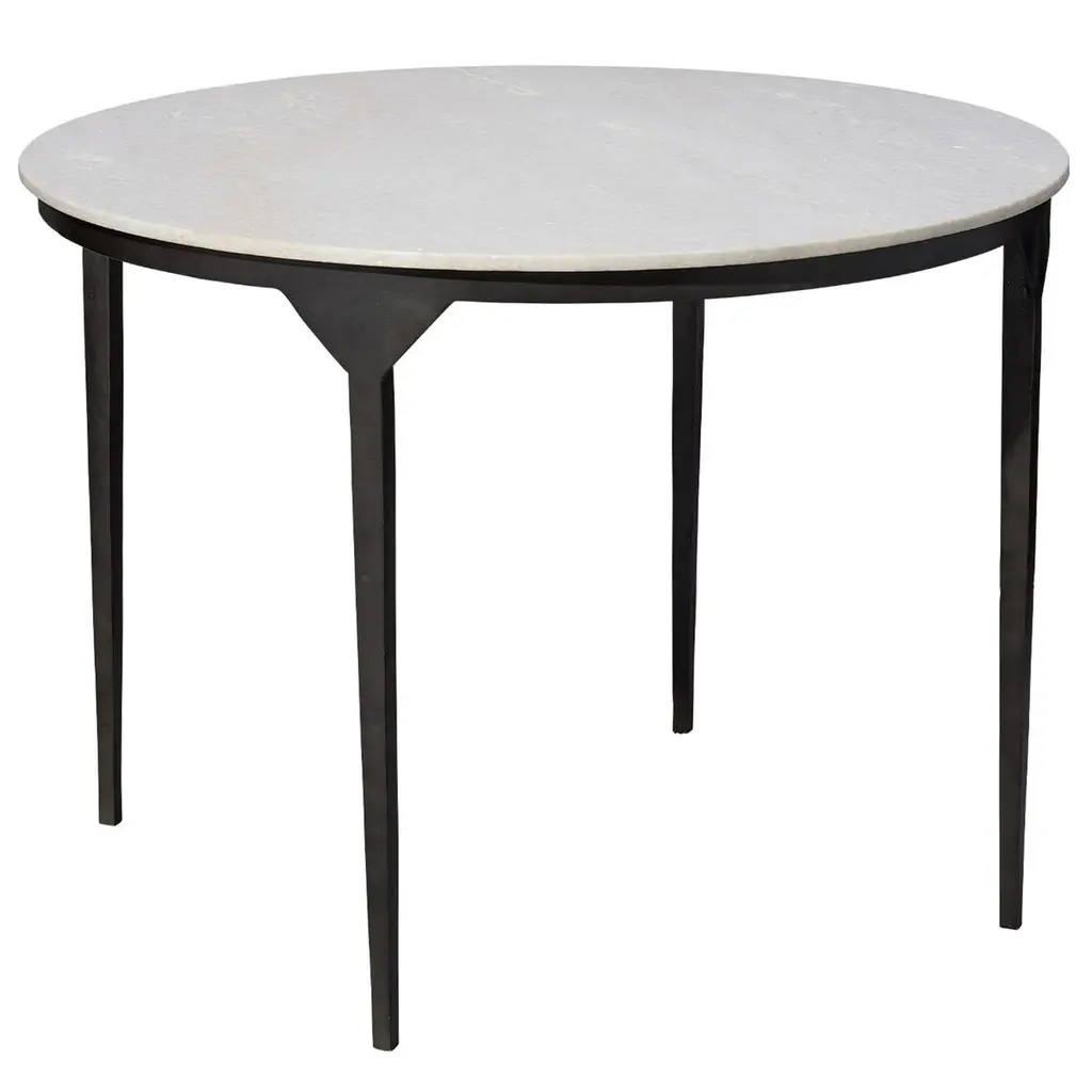 Set the Stage with this stunning dining table. Crafted from solid iron, the base provides a sturdy foundation for the round top, cut from premium Banswara marble. The marble's natural variations captivate, while the gloss finish adds a touch of luxury. Seating four, it's perfect for intimate dinners or casual brunches. Plus, the gunmetal black finish of the base adds a modern touch to the classic design. This table isn't just a mealtime staple, it's a statement piece.