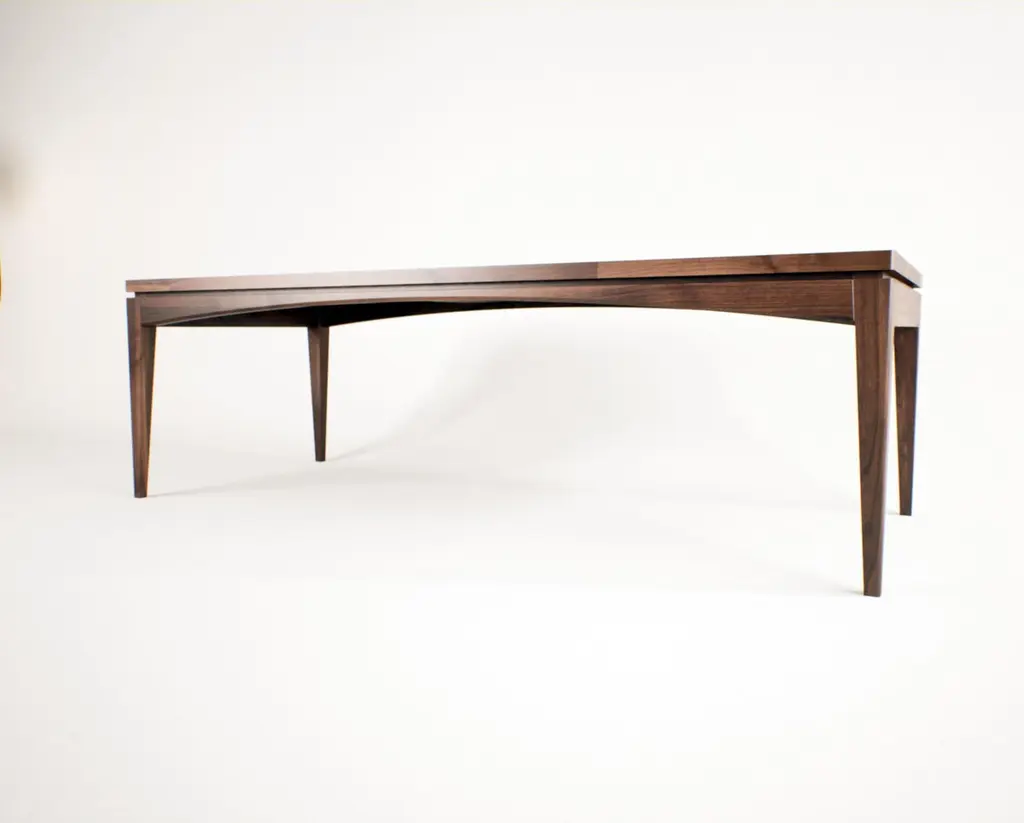 Dining Table in Solid Wood with Geometric Silhouette and Sculptural PresenceThis handmade dining table blends minimalist geometry with a grounded, architectural stance. Its structure is defined by the interplay of clean planes and solid volumes, resulting in a piece that feels both timeless and bold.Crafted from sustainably sourced hardwood, each table is built to reveal the organic beauty of the grain while maintaining a precise and intentional silhouette. The tabletop, generously proportioned and softly at the edges, rests on two solid bases whose shapes nod subtly to modernist and brutalist references.Designed to anchor a space—whether in a contemporary loft or a country house—it serves as a visual and functional centerpiece. Every curve, join, and proportion has been refined by hand to ensure balance, tactility, and permanence.Finished in a natural oil that enhances depth and protects without masking the material’s soul.Custom dimensions and wood options available upon request.