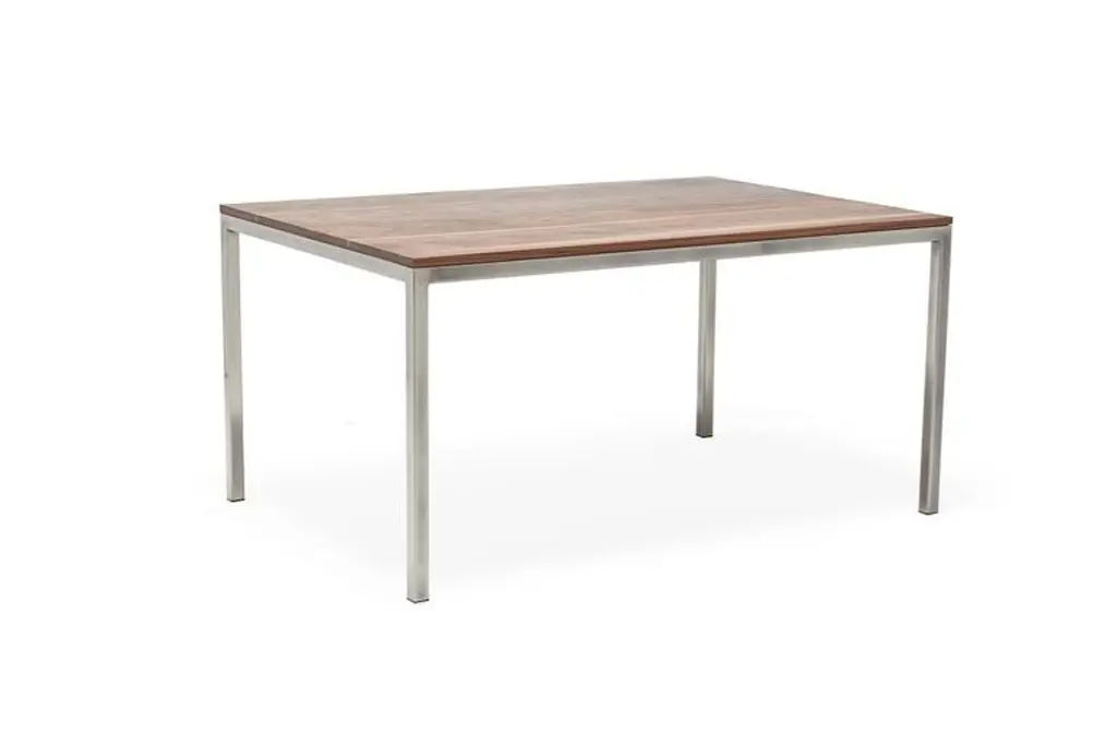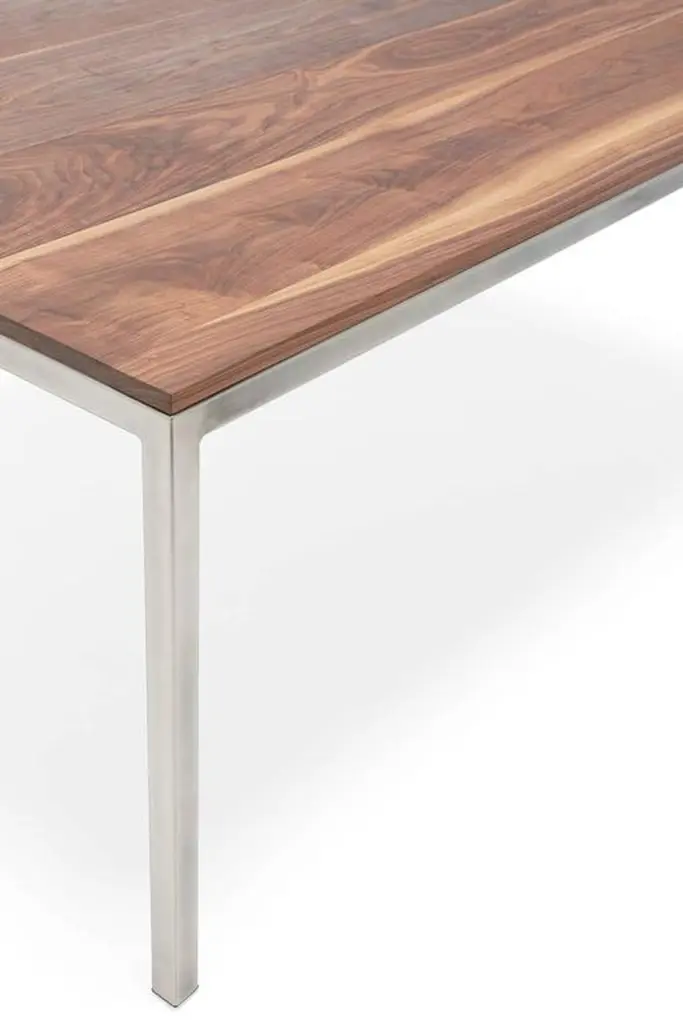 A newer addition to Stephen Kenn's The Inheritance Collection-dining. A solid walnut and steel dining table with simple, minimal and modern lines. Pairs well with the Inheritance Dining Chair.This item is made to order in Los Angeles.Want a different wood tabletop? Different metal finish for the legs? Please message us for information about custom materials and dimensions.