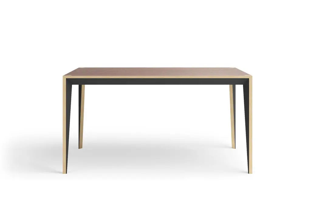 Merging clean lines with warm materials, the faceted geometry of the MiMi table creates a slender, elegant profile punctuated with painted surfaces that capture light. This modern and graceful design returns contemporary Italian craft to the office desk or compact dining table for urban living.NYCxDesign 2018 Honoree. Push two tables side-by-side and watch neighboring legs visibly become one. For office spaces, we encourage our clients to experiment with the system modularity to create multiple desk configurations and support their workplace productivity in a sharp, Milanese style. Designed in Brooklyn by Italian-born architect Ale Preda for Miduny, this artisanal product is made in Italy by master craftsmen. The MiMi Table Walnut Black model features a solid 13-ply furniture-grade birch plywood structure, a Black Walnut veneer top, a Grey-Black painted finish at the facets (RAL 7021), and is coated with a 20% gloss finish. Each MiMi table is hand-stamped with a unique serial number (on the underside) and comes with a signed certificate of authenticity. Like all our products, this item is efficiently packed for flat shipping inside a custom box and minimal assembly is required. Our custom joinery system allows legs to be pressure-fitted in the notched top and secured with two bolts. Assembly takes few minutes.