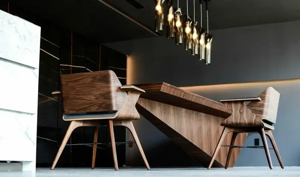Diamond dining table by Vasco Vieira Dimensions: W 300 x D 100 x H 75 cm Materials: American walnut 100% solid wood Variations available. Please contact us. Around the Tree The Diamond table is a large suspension table created by the Portuguese architect Vasco Vieira and deserves to be among the best design pieces in the world. Its length can go from 5 to 6 meters, having only 40 cm of contact with the ground. It is one of those cases where creativity and know-how combine to create something extraordinary. It is certainly another work of art where all areas of a company must be unified to make it happen. from the design, the mechanics, to the mastery of the craftsmen, including those who transport and assemble it, all must be professionals. The diamond table requires dedication and passion for what is done, nothing less. Our values lie in the respect, protection and sense of continuity towards our natural resources, our roots must be preserved, maintained and cared so they can keep inspiring us as well as our future generations. We are committed to be a sustainable brand; we feel obligatedto respect the purity of the materials we use in our pieces giving them the importance they deserve and making products that can be cared through generations with maintenance and repair. Portugal has centuries of history in woodworking, we draw honoring that tradition and combining it with state-of-the-arttechnologies, always trying to produce furniture with a high-level practical value and connecting our ancestry’s generations with the ones to come. Every masterpiece we make represents a tribute to the materials we use. This vow of respect represents the value of our collection and makes it possible for us to ensure the quality of our pieces, giving us the confidence to mark them as “Made in Portugal” with the distinctiveness it deserves.