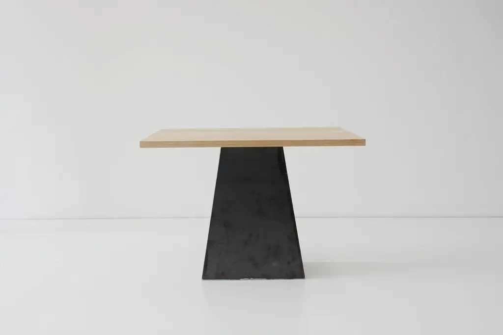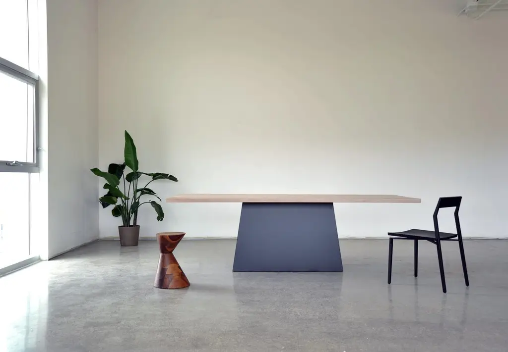 Walnut large brackton dining table by Hollis & MorrisDimensions: 102" x 42" x H 29.5"Materials: Solid wood. Cold rolled steel. Hardwax oil, powder-coated metal. Also available in natural oak, black oak, and white oak. And, white or black powder-coated finish.Designer Mischa Couvrette’s urban abstraction of a mountain offers a design object both minimalist and powerful, the dramatic union of solid wood and metal. Brockton’s substantial base rises from the ground like a monolith, offering a dialogue with the angular silhouettes of the Toronto collection.Based out of Toronto, Hollis & Morris takes its name from an intersection in Halifax where the company started as a series of garage explorations in design. A steadfast commitment to function with a distinctive approach to design. Hollis & Morris creates handmade furniture and lighting which carefully balances modern and honest designs. Versatile, well crafted, and timeless. Pieces by Hollis & Morris easily complement residential, commercial, and hospitality spaces. Driven by respect towards natural and honest processes, trademark integrations of solid wood and metal celebrate the inherent strengths of each material, resulting in thoughtful, quality pieces made to last with you throughout the years.