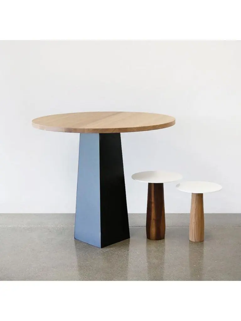 Walnut small Brockton dining table by Hollis & MorrisDimensions: diameter 42" x height 29.5"Materials: Solid wood. Cold rolled steel. Hard wax oil, powder-coated metal.Also available in natural oak, black oak, and white oak. And, white or black powder-coated finish.Designer Mischa Couvrette’s urban abstraction of a mountain offers a design object both Minimalist and powerful, the dramatic union of solid wood and metal. Brockton’s substantial base rises from the ground like a monolith, offering a dialogue with the angular silhouettes of the Toronto collection.Based out of Toronto, Hollis & Morris takes its name from an intersection in Halifax where the company started as a series of garage explorations in design. A steadfast commitment to function with a distinctive approach to design. Hollis & Morris creates handmade furniture and lighting which carefully balances modern and honest designs. Versatile, well crafted, and timeless. Pieces by Hollis & Morris easily complement residential, commercial, and hospitality spaces. Driven by respect towards natural and honest processes, trademark integrations of solid wood and metal celebrate the inherent strengths of each Material, resulting in thoughtful, quality pieces made to last with you throughout the years.