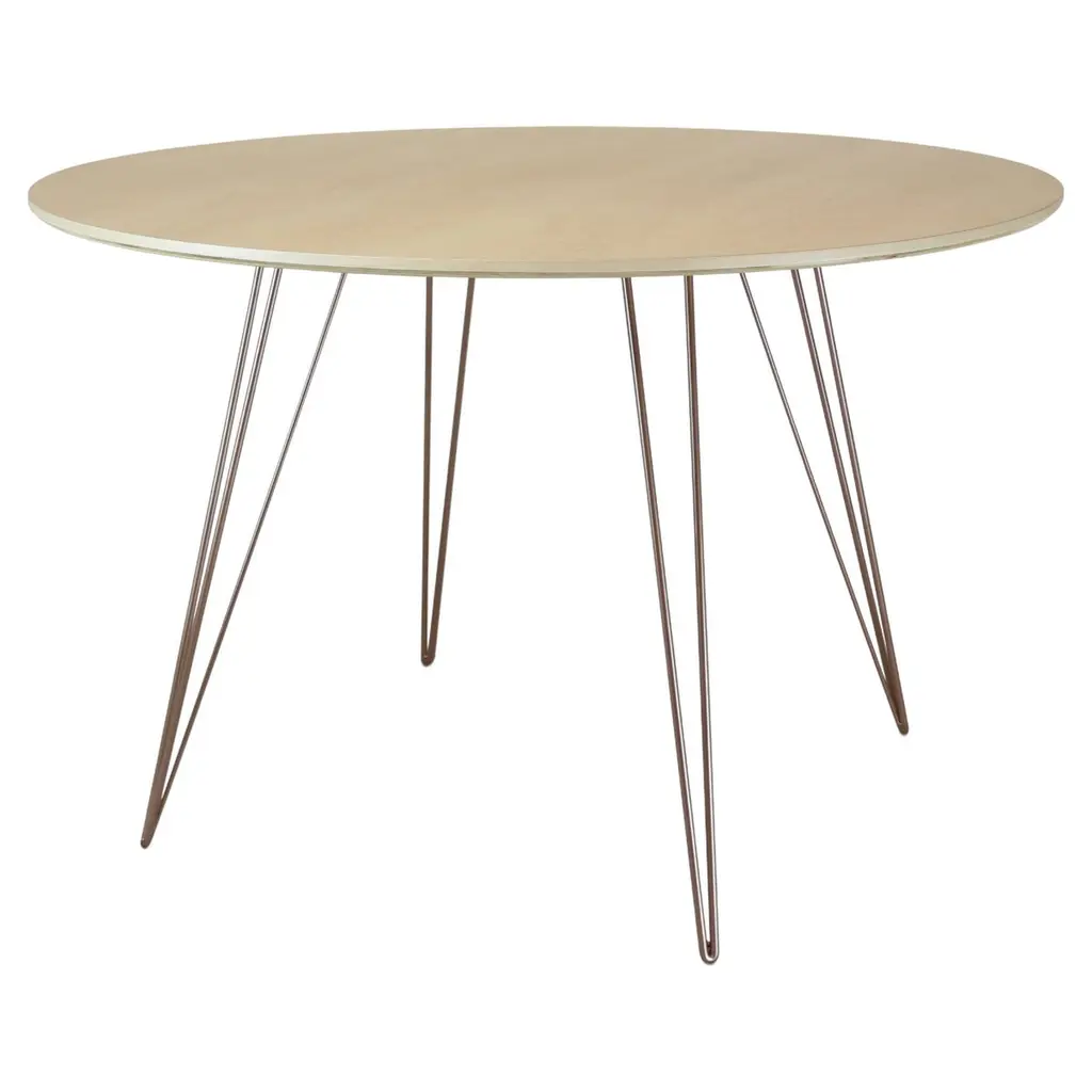 Walnut Williams Dining Table Rose Copper Hairpin Legs Circle Top