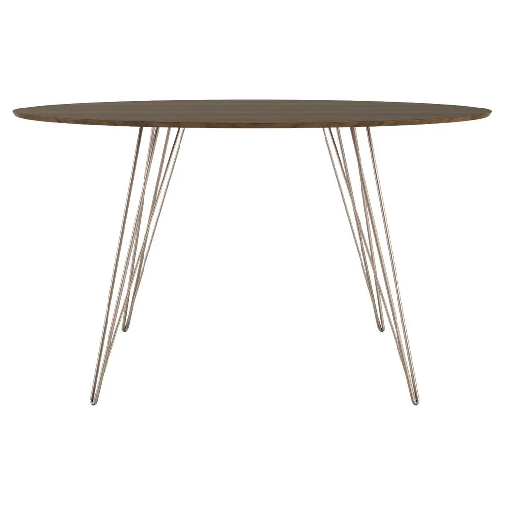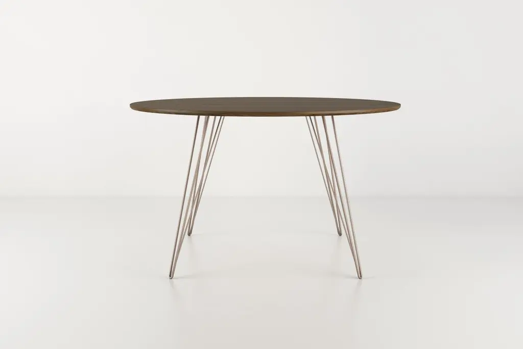 Walnut Williams Dining Table Rose Copper Hairpin Legs Circle Top