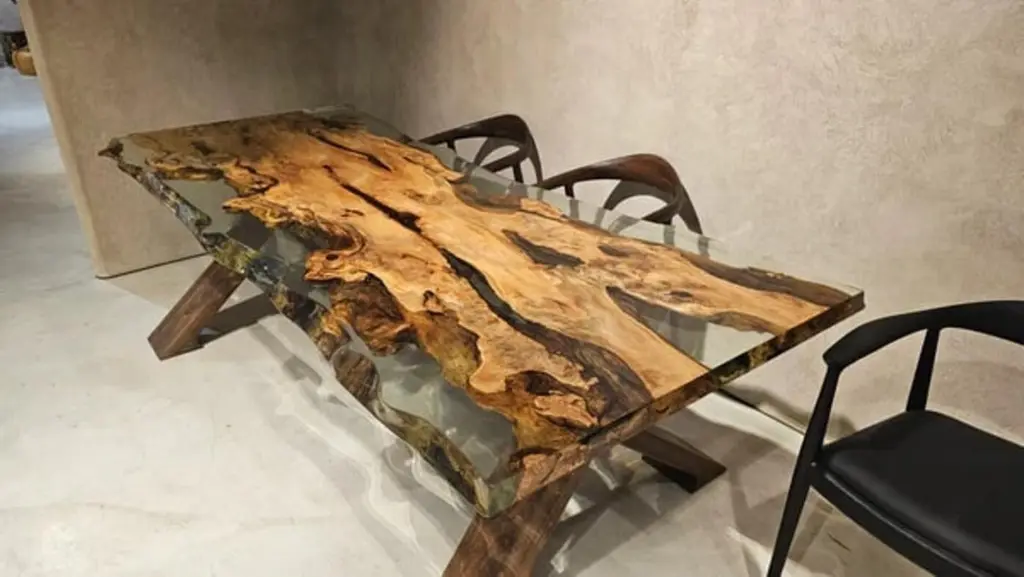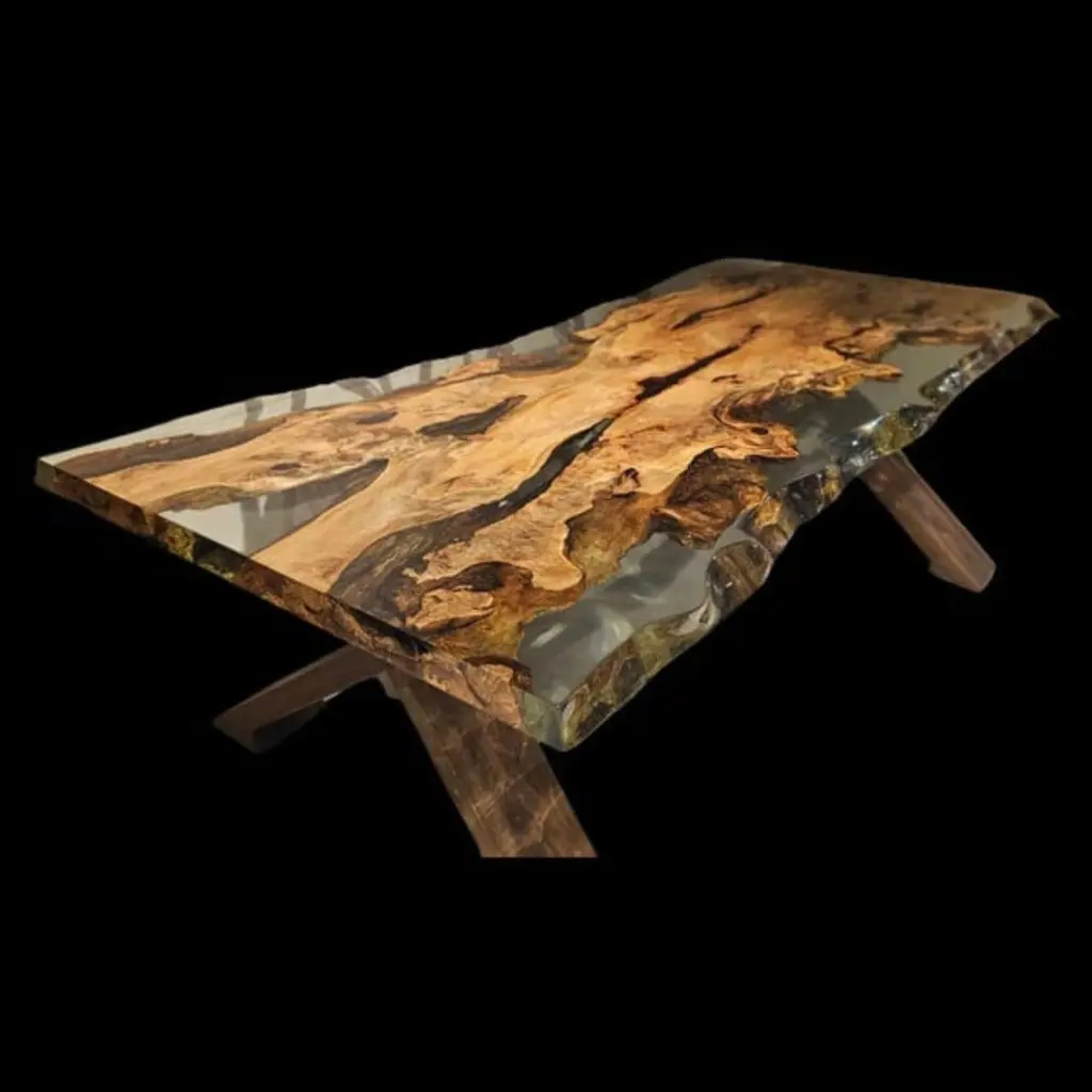 This dining table combines the texture of nature with modern design, featuring a live-edge wooden surface and a clear resin detail that catches the eye. The natural patterns and warm tones of the wood contrast with the clarity of the resin, creating a mesmerizing visual depth. The table's natural wooden legs add a rustic touch to the design while ensuring stability.Both functional and aesthetically pleasing, this dining table perfectly complements natural and modern interiors. Ideal for use in a living room or relaxation area, this table stands out as both a decorative object and a practical surface.✔ Live-Edge Wood and Clear Resin Detail✔ Natural Wooden Legs✔ Perfect Harmony of Natural and Modern Design✔ Adds a Natural and Stylish Touch to Any SpaceSize42’’W-96’’L (6-8 Seater)